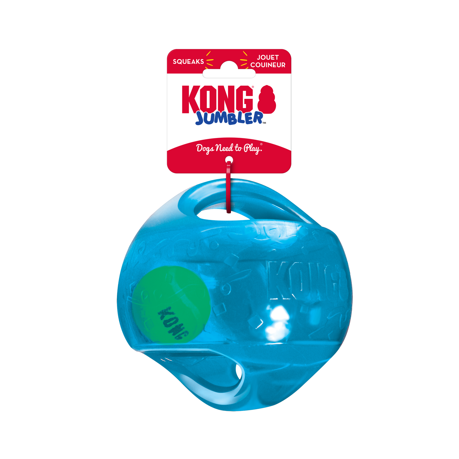 Kongジャンブラーは、インタラクティブな楽しみの2倍の2つのボールおもちゃです。インテリアテニスボールとラウドスクイークエンシスプレイ、ハンドルはピックアップと揺れを簡単にします。ジャンブラーはタフなプレイに立ち向かい、フェッチのゲームに最適です。 Kongジャンブラーは、2つの形とサイズで利用でき、あなたとあなたの犬のためのエキサイティングでアクティブなプレイセッションを保証します。