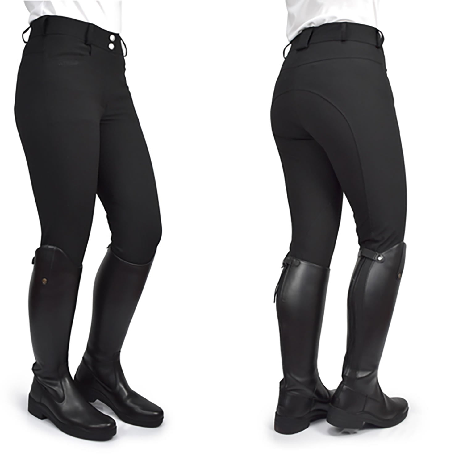 Classically styled and comfortable, these four-way stretch breeches are suitable for everyday use yet smart enough for competition use. The self fabric knee patches are perfect for those who'd prefer to not feel stuck to their saddle and won't get stuck together when walking. Featuring open front jean style pockets, seat seam for comfort in the saddle, a subtle elastic ankle for a streamlined look and a comfortable mid-rise waistband with belt loops and Whitaker hook and eye fastenings.