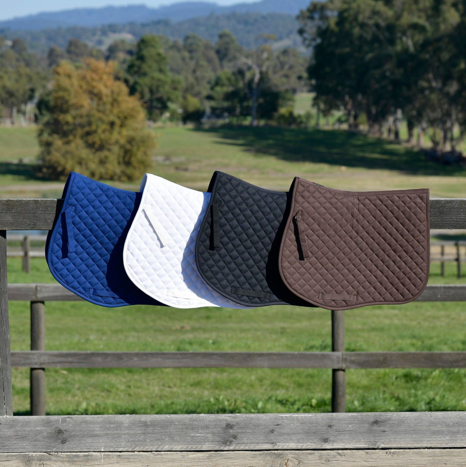 A great value all purpose saddle pad made from a durable diamond quilted polycotton is the Saxon Defiant All Purpose Pad. This features touch tape tabs that attach to the girth straps for a secure fit and girth loops to help prevent slipping and keep the pad in place.