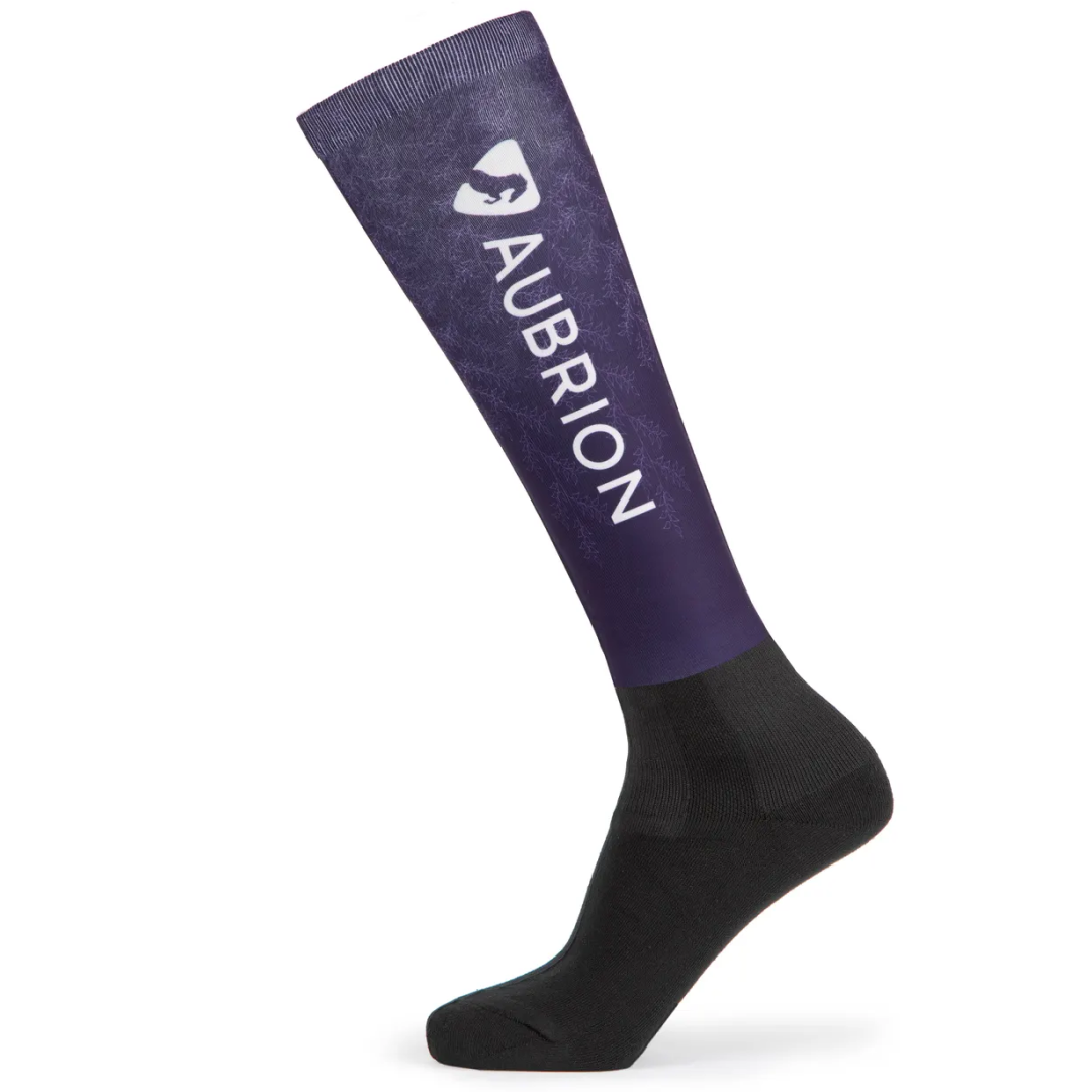 Shires Aubrion Hyde Park Maid Socks -Purple Lightning。これらの印象的なクロスカントリーソックスでは、長いブーツの下で洗練された支持的な雰囲気があります。ゾーンクッションは、衝撃ショックを緩和するのに役立ち、摩擦を吸収し、支持的な構造は脚と足首を抱きしめて回復を助け、織物を吸う布地は足を乾燥させます。