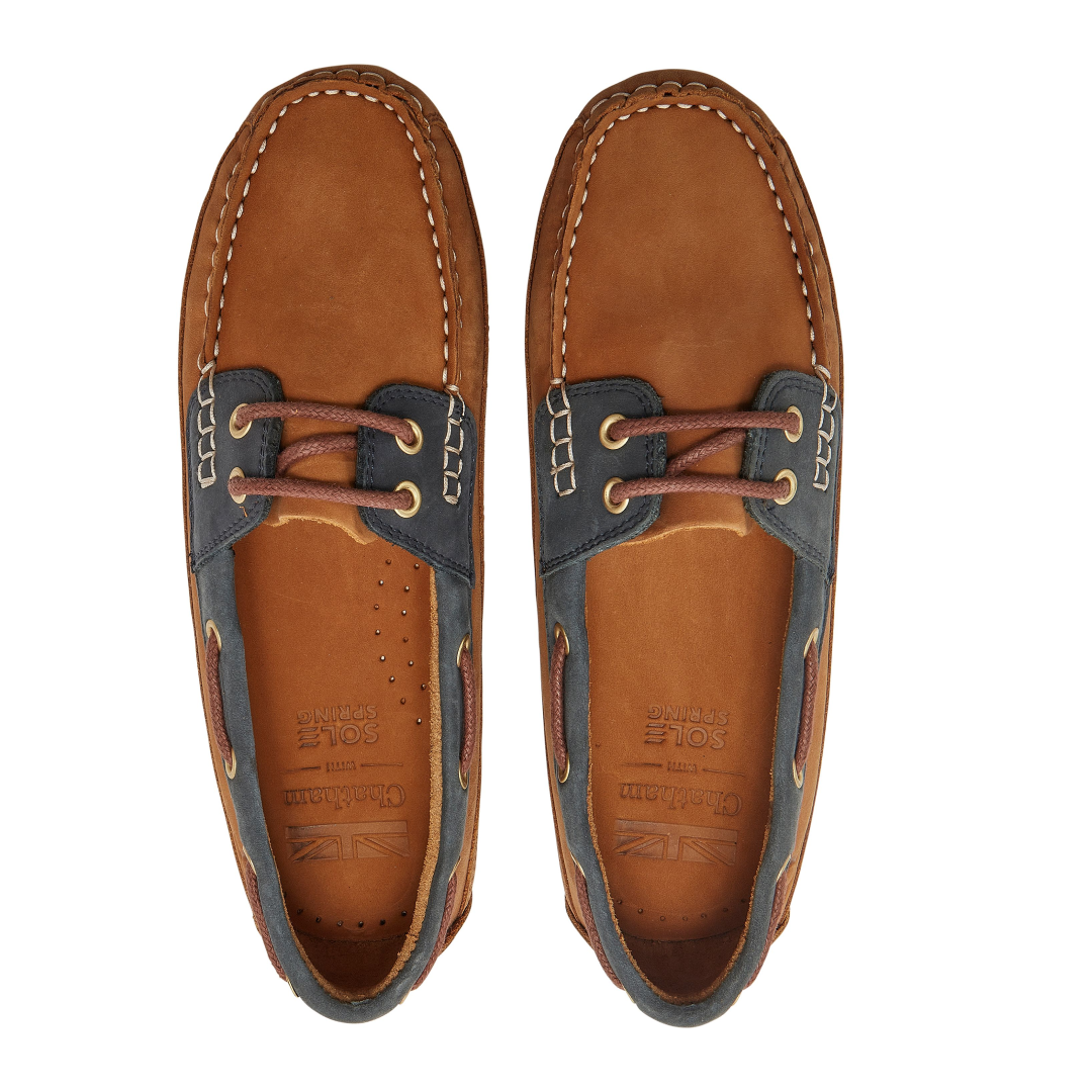 モカシンを運転するチャタムクローマーヌバックは、今シーズン、2つのクラシックを楽に融合させる新しいスタイルです。運転靴のソールを備えたモカシン。