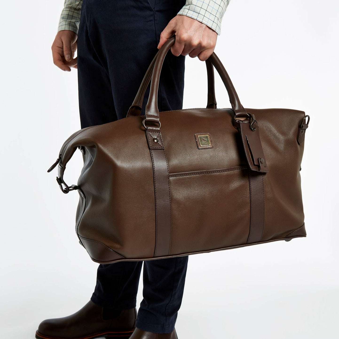 Made with luxurious leather our Tollymore holdall has been thoughtfully designed to maximise every bit of room. An extra large opening allows for easy packing while multiple internal and external pockets store away your essentials. Easy to carry with adjustable detachable straps, this weekend bag will do some miles
