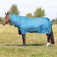This lightweight turnout rug is the perfect choice to use on mild but wet days. The revolutionised StormX Empra turnout rugs are designed using a waterproof and ripstop 600 denier outer material ultimate defence against the elements. This teal rug features a 50g fill to provide a lighter layer for your horse, integrated contour neck cover for extra protection and is lined with a smooth and breathable poly-tec lining to offer optimum comfort. Completed with Empra cross surcingle’s, twin buckle clip chest fastenings and adjustable leg straps to keep the rug securely in place.