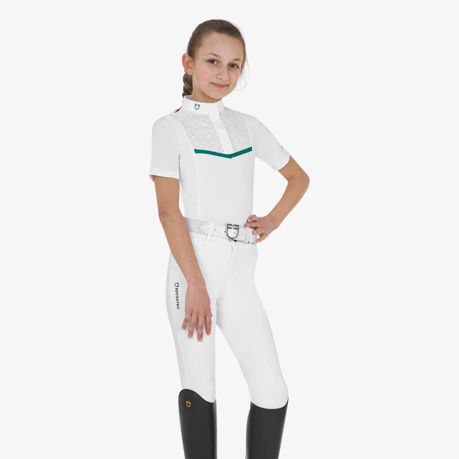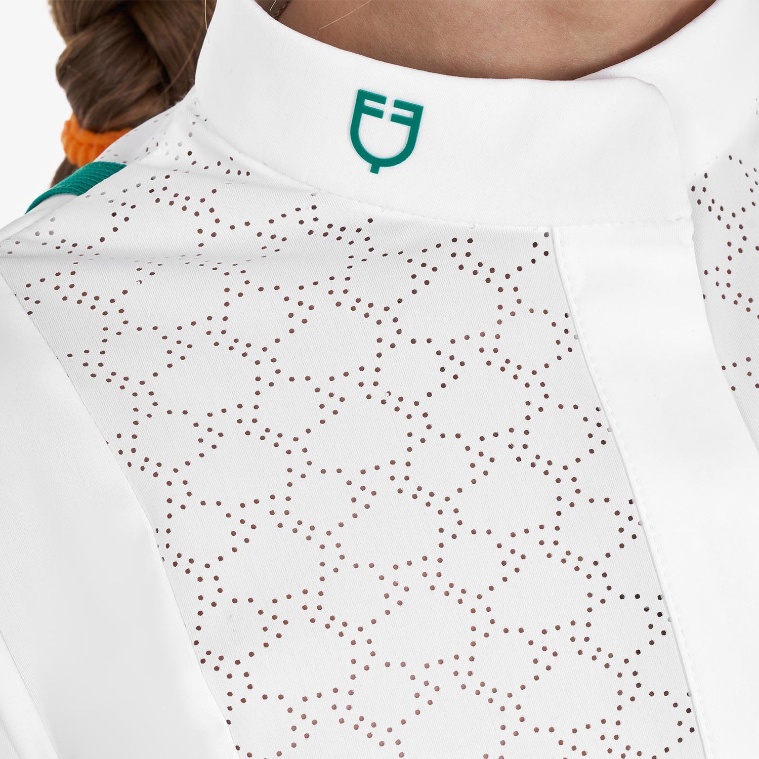- Equestro logo graphics printed on the right side of the collar and on the left sleeve