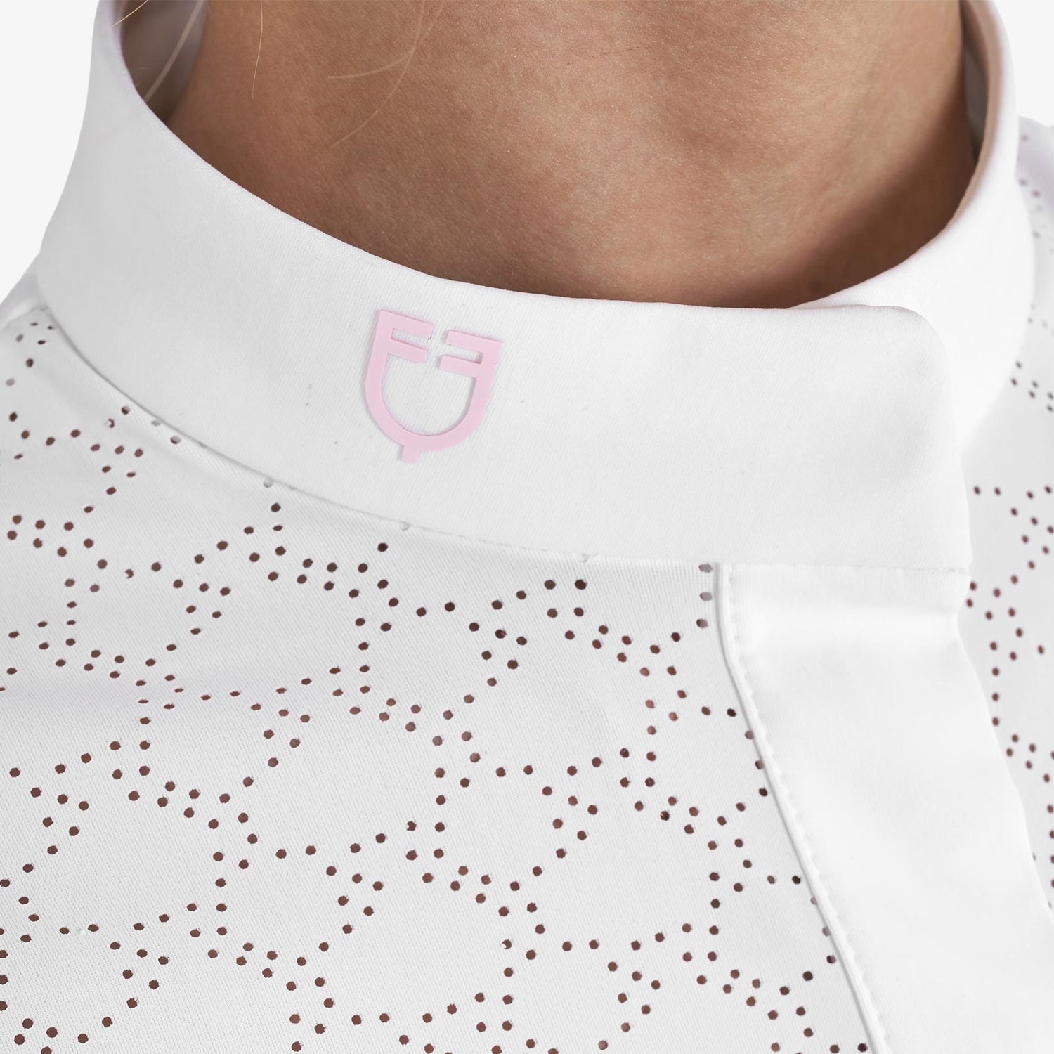 This girls' slim fit competition polo shirt combines style and performance with its innovative breathable and elastic fabric, ensuring maximum freedom of movement during summer events. The tailored cut follows the body’s natural lines without restricting comfort. Perforated inserts on the chest not only add a subtle diamond pattern but also enhance ventilation, promoting quick sweat evaporation in key areas. Designed for both comfort and elegance, this high-quality polo is perfect for competition days and beyond.