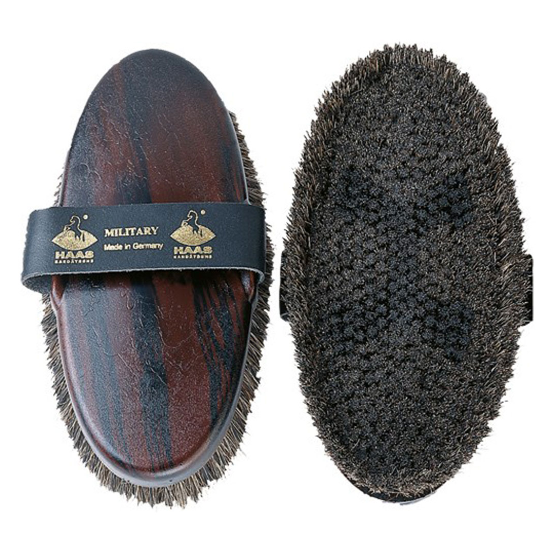 Haas Brushes Military – Die kürzeren und stärkeren Borsten sorgen für eine gründliche Reinigungswirkung, während die längeren Borsten Schmutz entfernen und den Glanz verstärken.