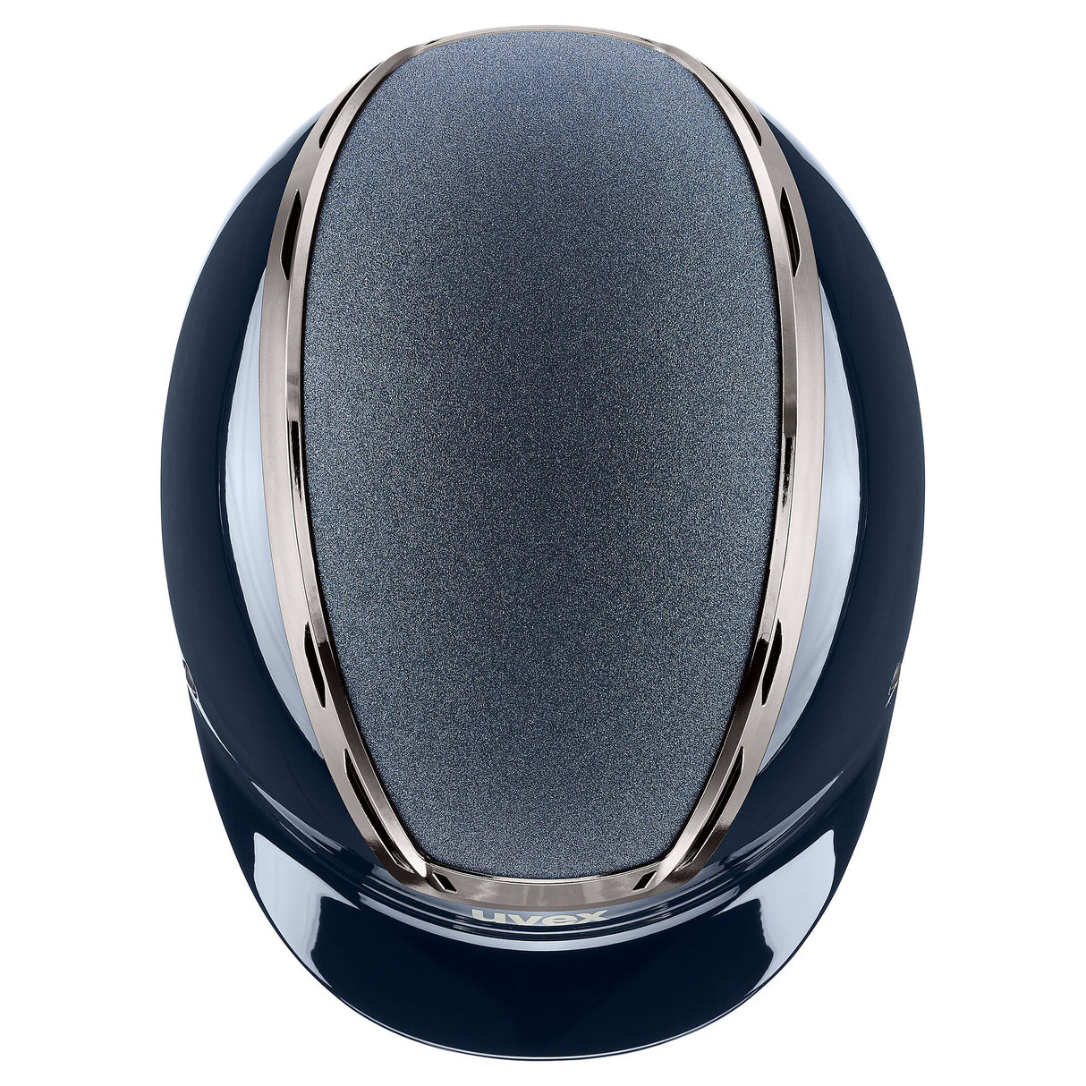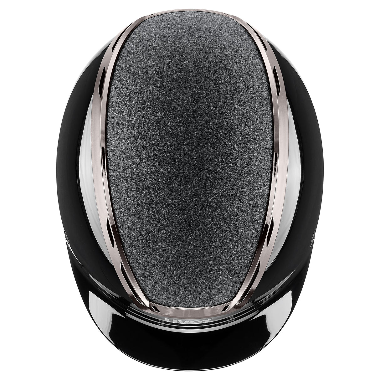 Experience top-tier safety and style with the Uvex Exxeed Blaze riding helmet. Its high-gloss piano lacquer finish and chrome frame deliver a striking look, while the robust hardshell construction with a lightweight EPS core ensures exceptional impact resistance. The innovative uvex 3D IAS system and quick-adjust strap dividers provide a personalized, secure fit. Enjoy enhanced comfort through wide air vents for breathability and soft synthetic leather strap covers. Designed for riders who demand both protection and elegance, this helmet keeps you safe and comfortable during every ride.