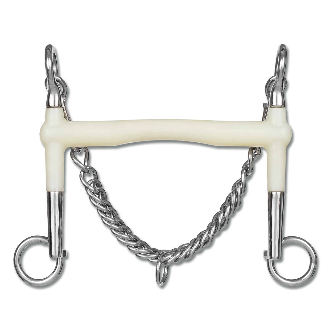 Horses like the lasting apple taste of these bits, as it stimulates chewing activity. Smooth plastic upper, bit rings and links made of rust-free stainless steel.