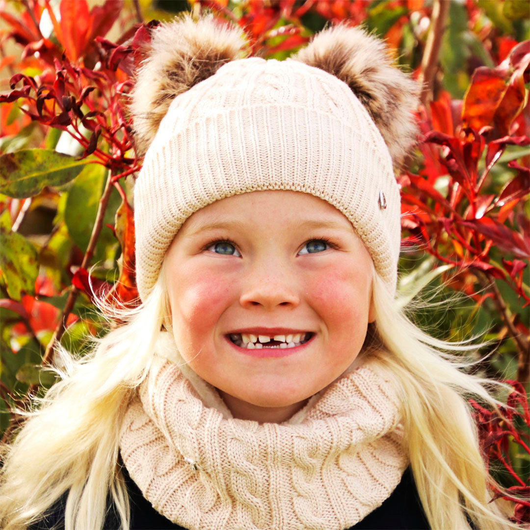 Die wunderschön gefertigte Morzine-Bommelmütze mit luxuriös weichem Fleecefutter hält den Kopf Ihres Kindes bei jedem Wetter warm und passt perfekt zum Morzine-Schlauchschal.