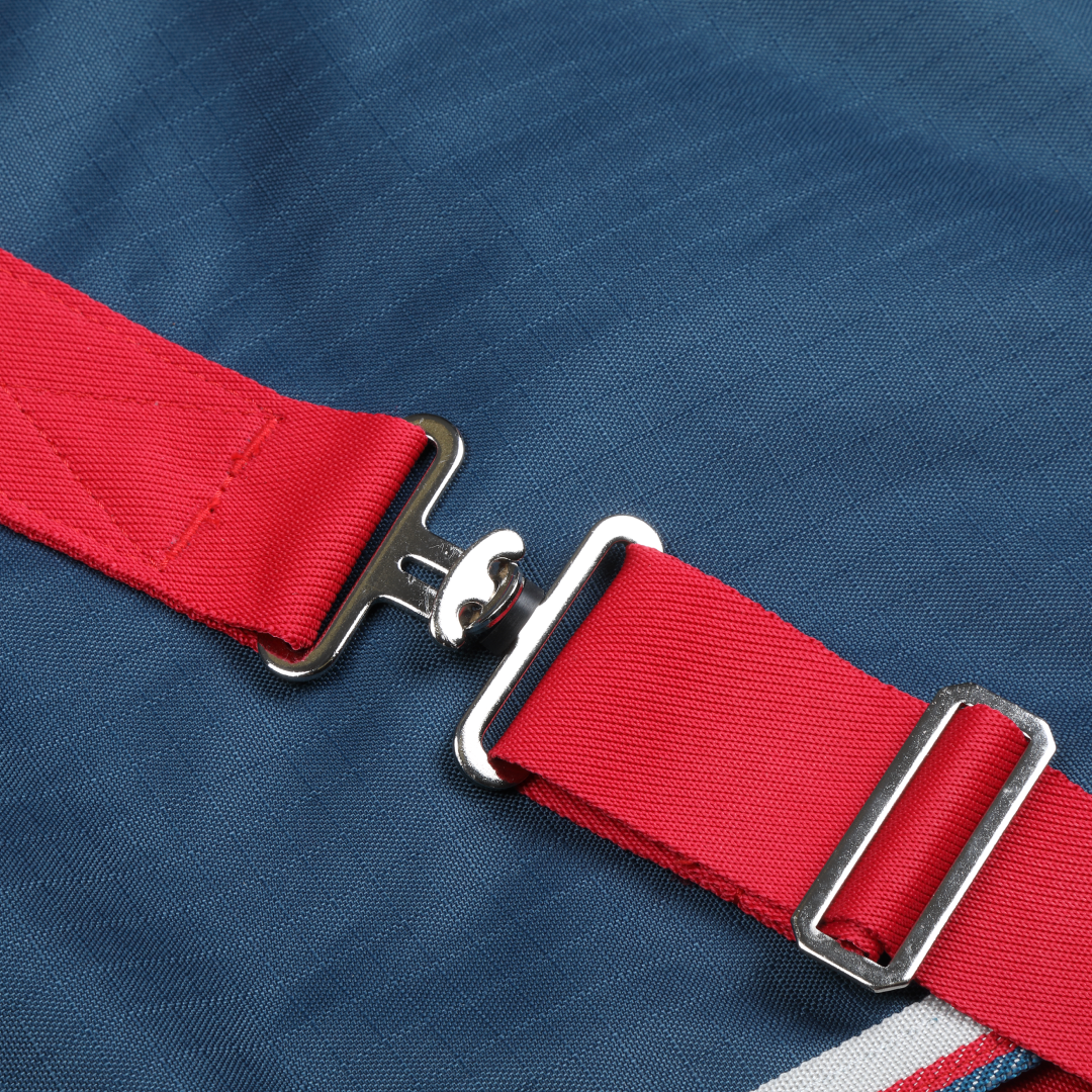Die Decke ist so konzipiert, dass sie der durchschnittlichen Beanspruchung auf dem Feld standhält, und verfügt über ein 600-Denier-Ripstop-Außenmaterial, das vollständig wasserdicht ist. Mit dem zusätzlichen Vorteil eines konturierten Halses können Sie Ihr Pferd mit der Gewissheit herausbringen, dass es glücklich und trocken und relativ frei von Wasser ist Dreck!