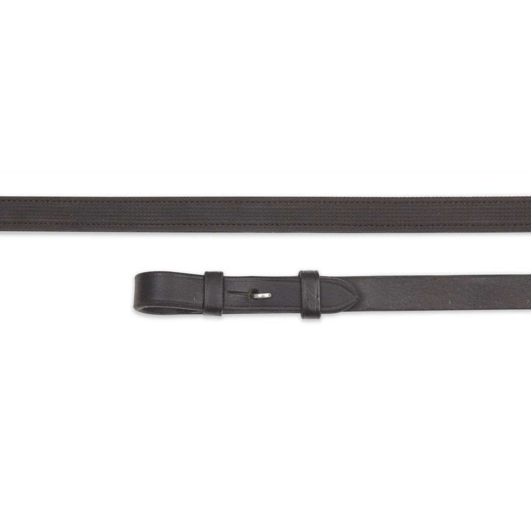 Die Zügel sind mit einem rutschfesten, feinen Noppengummi für zusätzlichen Halt ausgekleidet und an der Außenseite mit glattem, hochwertigem Leder versehen, um einen eleganten, arenatauglichen Look zu erzielen.
