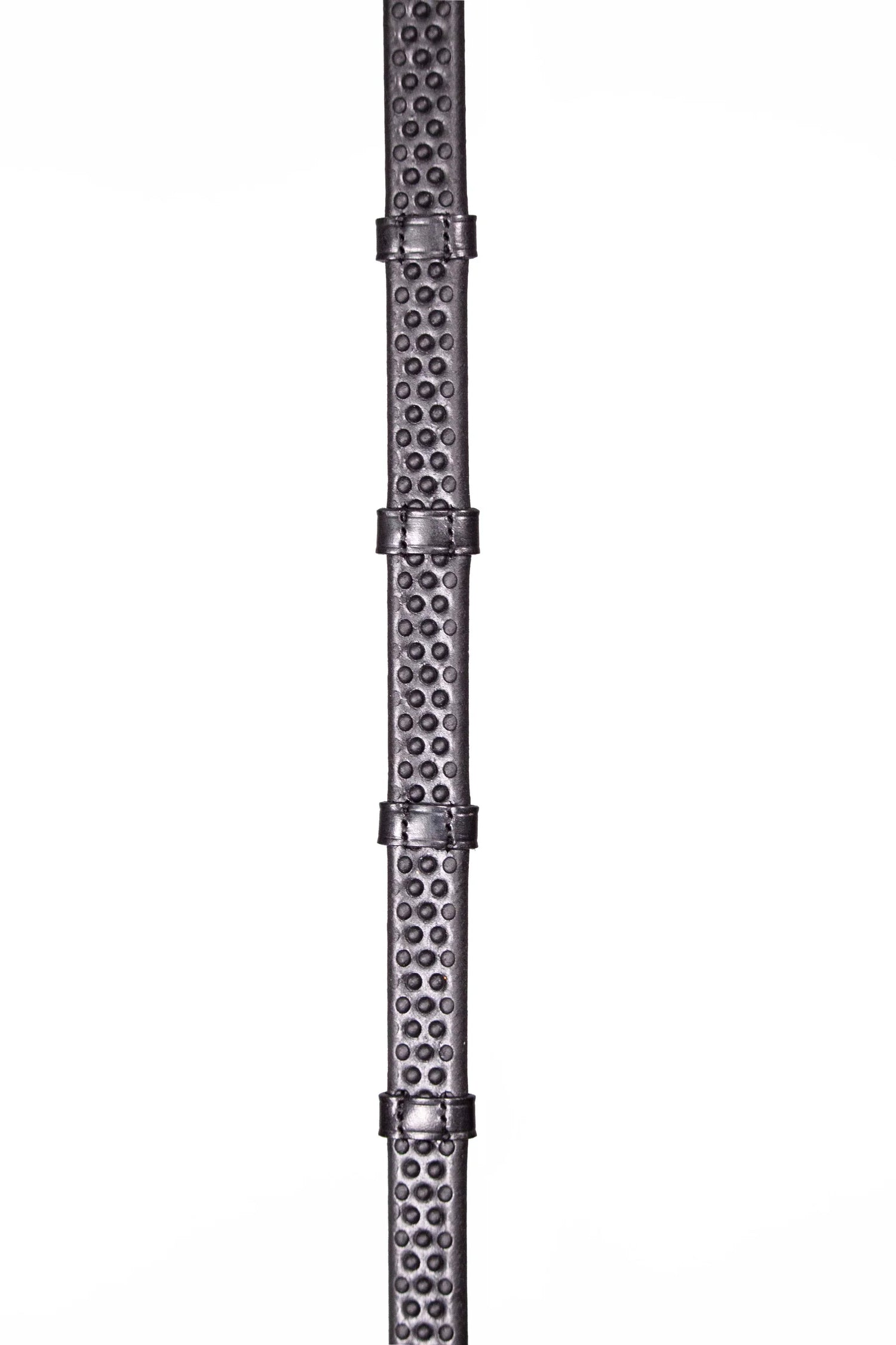 These reins feature Biothane® rubber pimples with hand stitched leather stoppers every 5cm. A very thin and flexible rein more suited for dressage and flatwork.