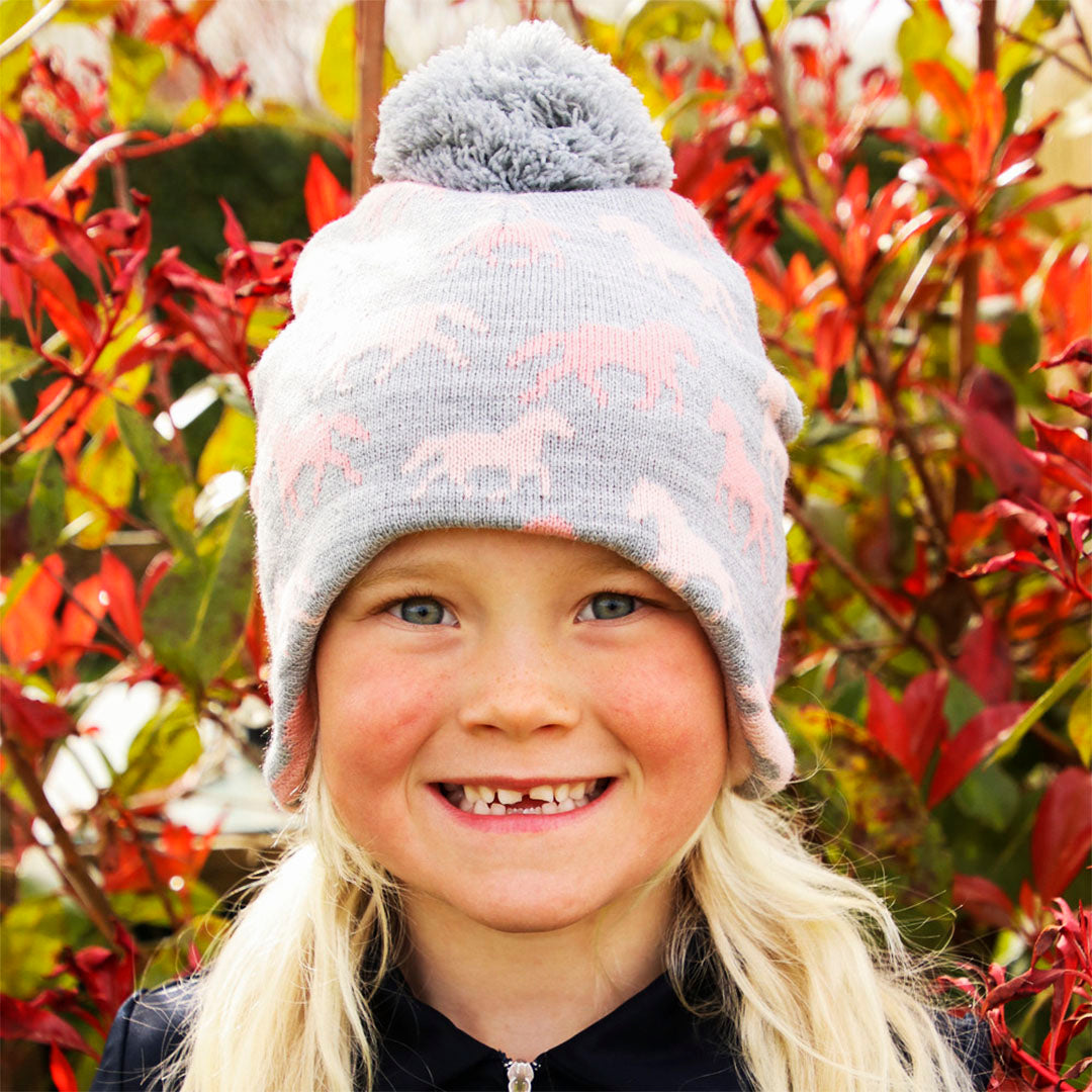 The warm and cosy Hy Equestrian Flaine Children's Bobble Hat is perfect for your horse-mad child. to keep them feeling warm and cosy whether they are spending the day T the yard, or heading out for a family walk.