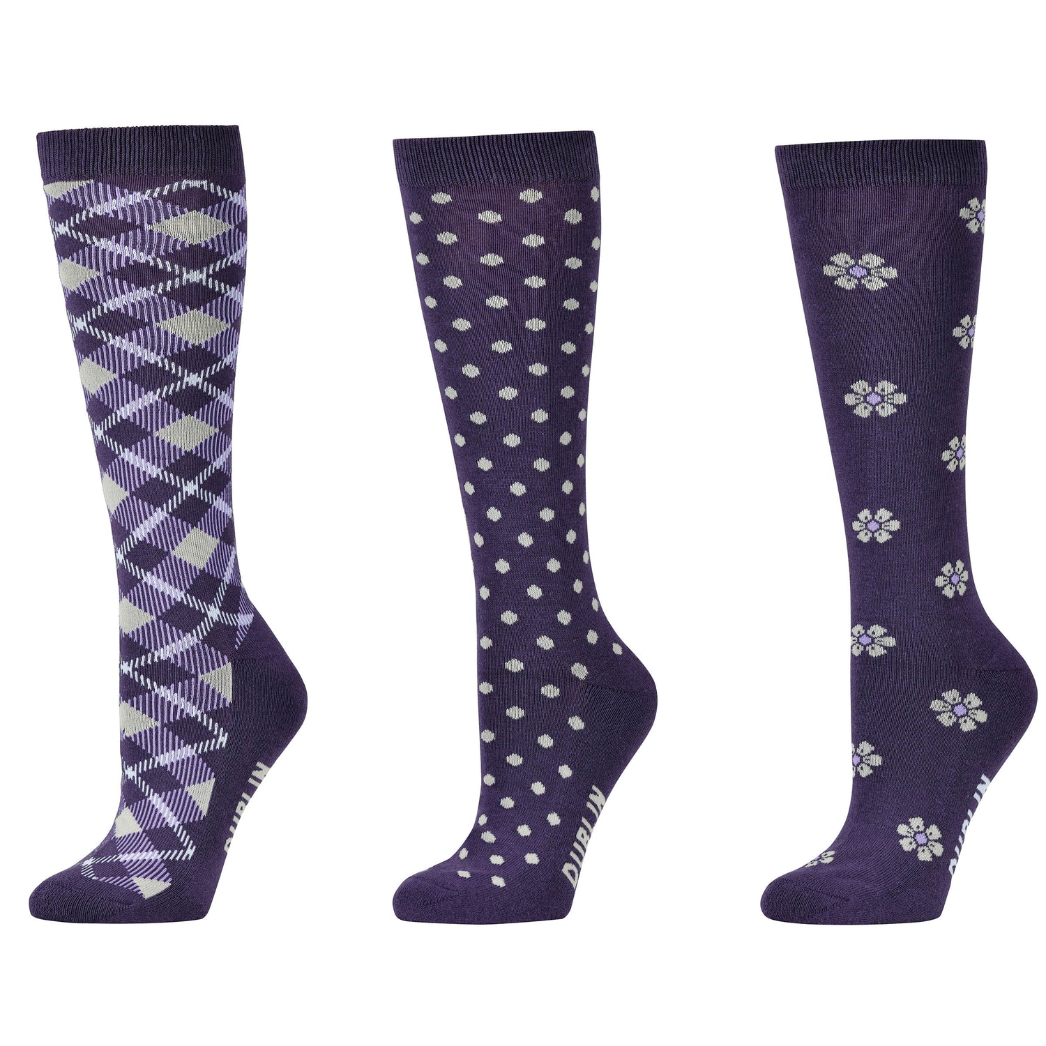 Add some fun and colour to your riding outfit with the Dublin 3 Pack Socks, these packs of high socks add colour and comfort to any outfit, made from a naturally breathable stretch cotton your feet are sure to stay comfortable all day long. A pack of 3 pairs of socks that come in assorted designs.