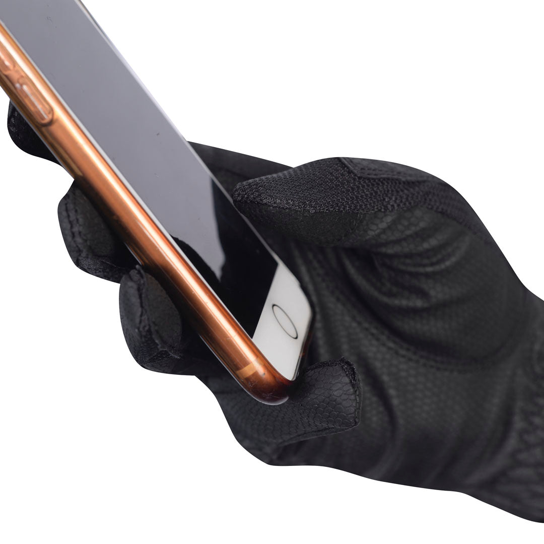 The Dublin Mesh Panel Riding Gloves are made from a stretchable synthetic serino fabric for comfort and grip, with air vented mesh panels across the back of the hand for breathability. Featuring an adjustable touch tape closure and are touch screen compatible for ease of use.