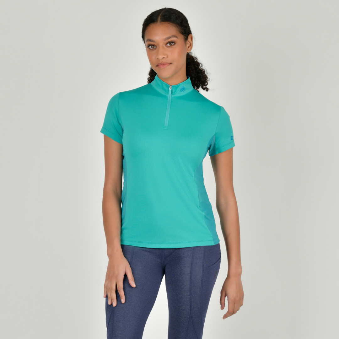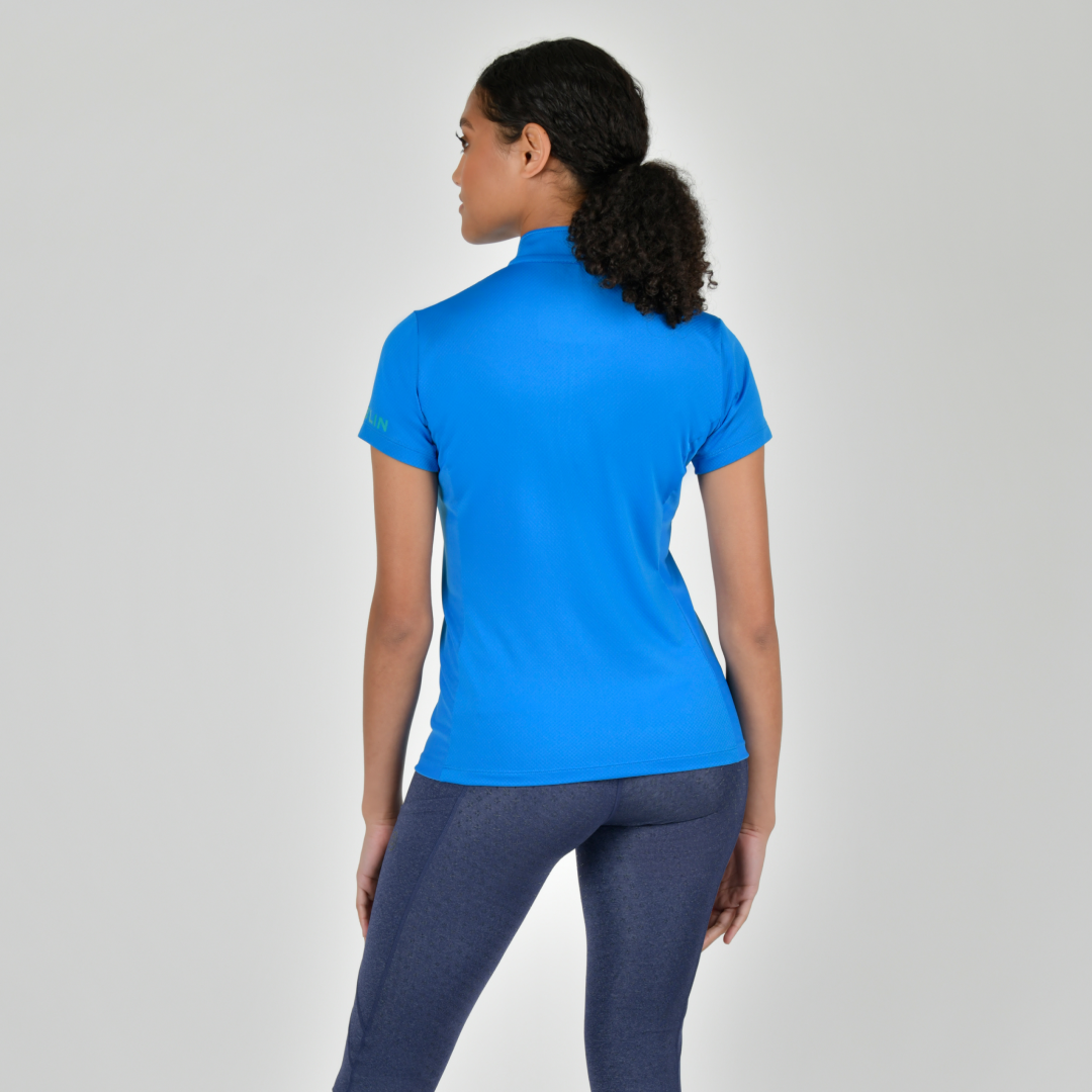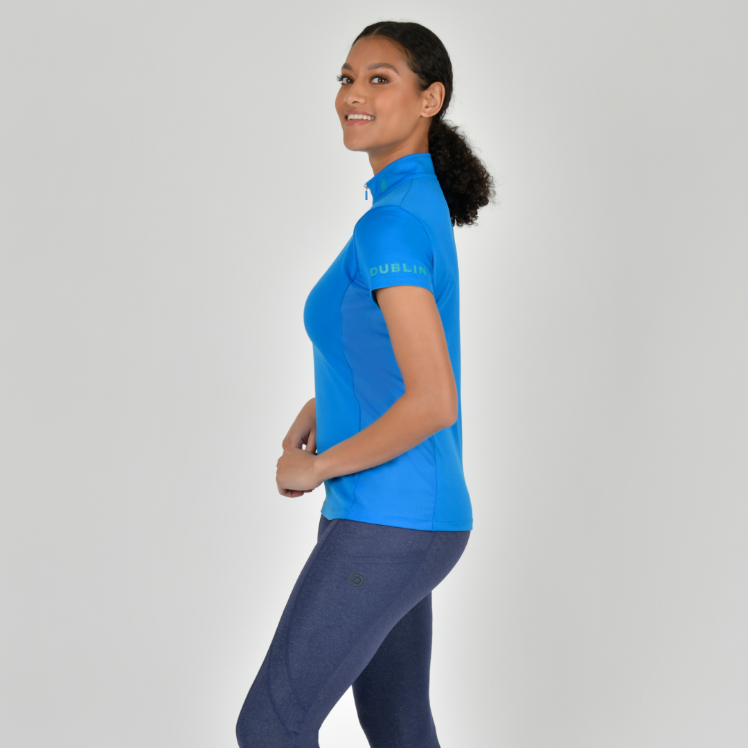 The Dublin Airflow Short Sleeve Ladies Top is a great everyday training top or base layer, featuring both sun protection and Comfort Dry Technology for all day comfort, the mesh side panels offer additional ventilation as well as a flattering look. This short sleeve top has a 1/4 zip placket with stand collar for additional protection of the neck, contrast branding on the sleeve and inner collar. A firm favourite for the warmer seasons.