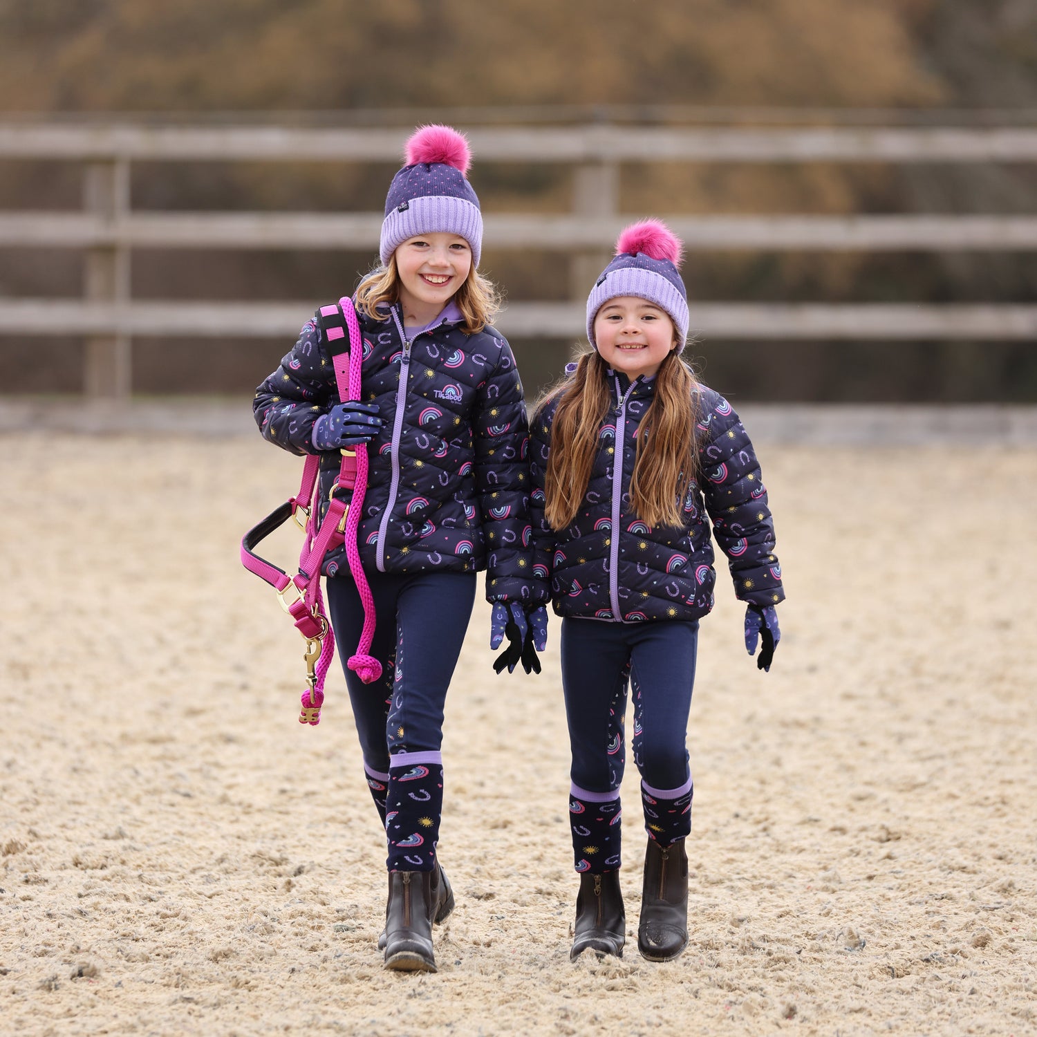 Easy to wear, the Shires Tikaboo Children's Padded Coat keeps busy pony riders cosy on the yard. It has a lightweight feel and a soft-wear polyester fill quilt to give children the freedom to have fun. A cosy hood offers protection against the elements and along with the cuffs and hems is trimmed in a stretch binding.