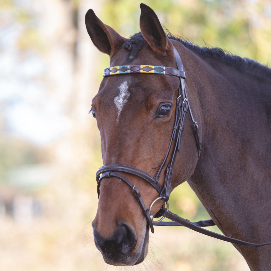 Shires Velociti GARA Leather Polo Browband - Purple/Dark Green/Yellow / Pony is backordered and will ship as soon as it is back in stock.