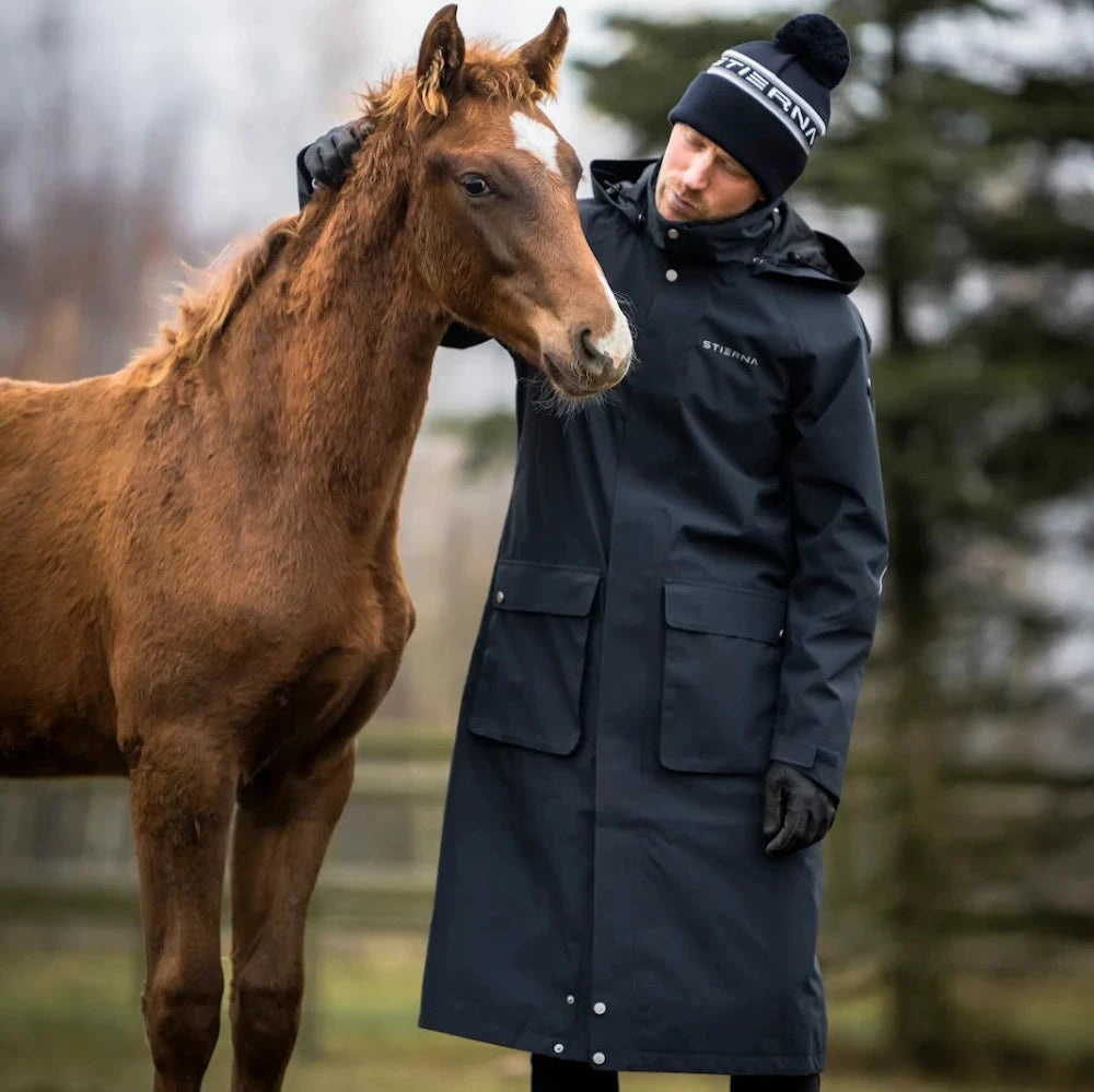 The Stierna Men's Sky Rain Coat is the ultimate rain protection for equestrians and outdoor enthusiasts. Crafted from 2-layer EquTex™ fabric, this raincoat is waterproof, windproof, and highly breathable, ensuring you stay dry and comfortable during wet and windy conditions. Its eco-friendly design features recycled polyester and a fluorocarbon-free DWR treatment, making it both sustainable and durable.