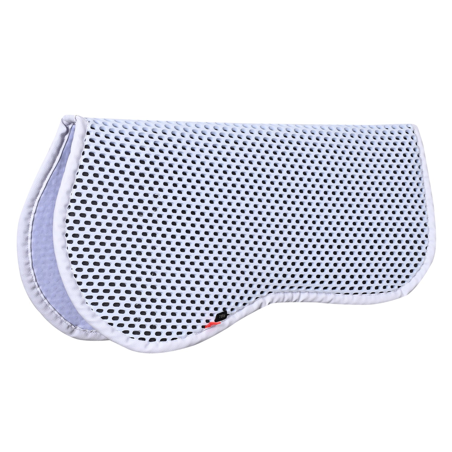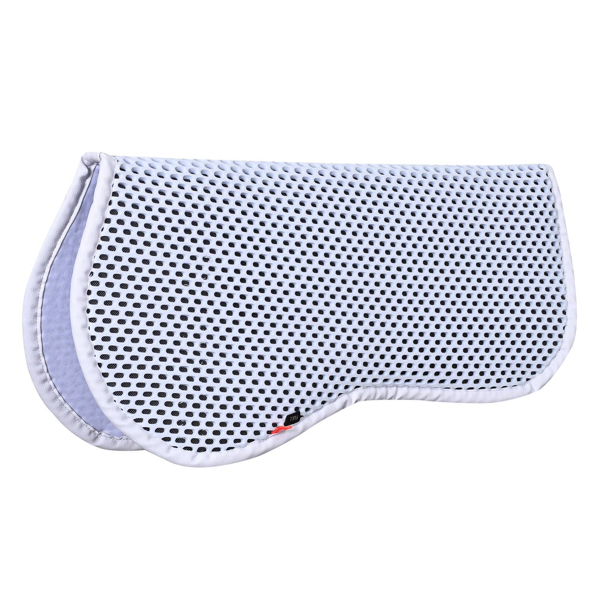 This half pad is crafted from shock absorbing TPE foam with a mesh lining, offering exceptional breathability. Its innovative pattern effectively distributes weight and movement evenly, ensuring optimal comfort and performance for your horse.