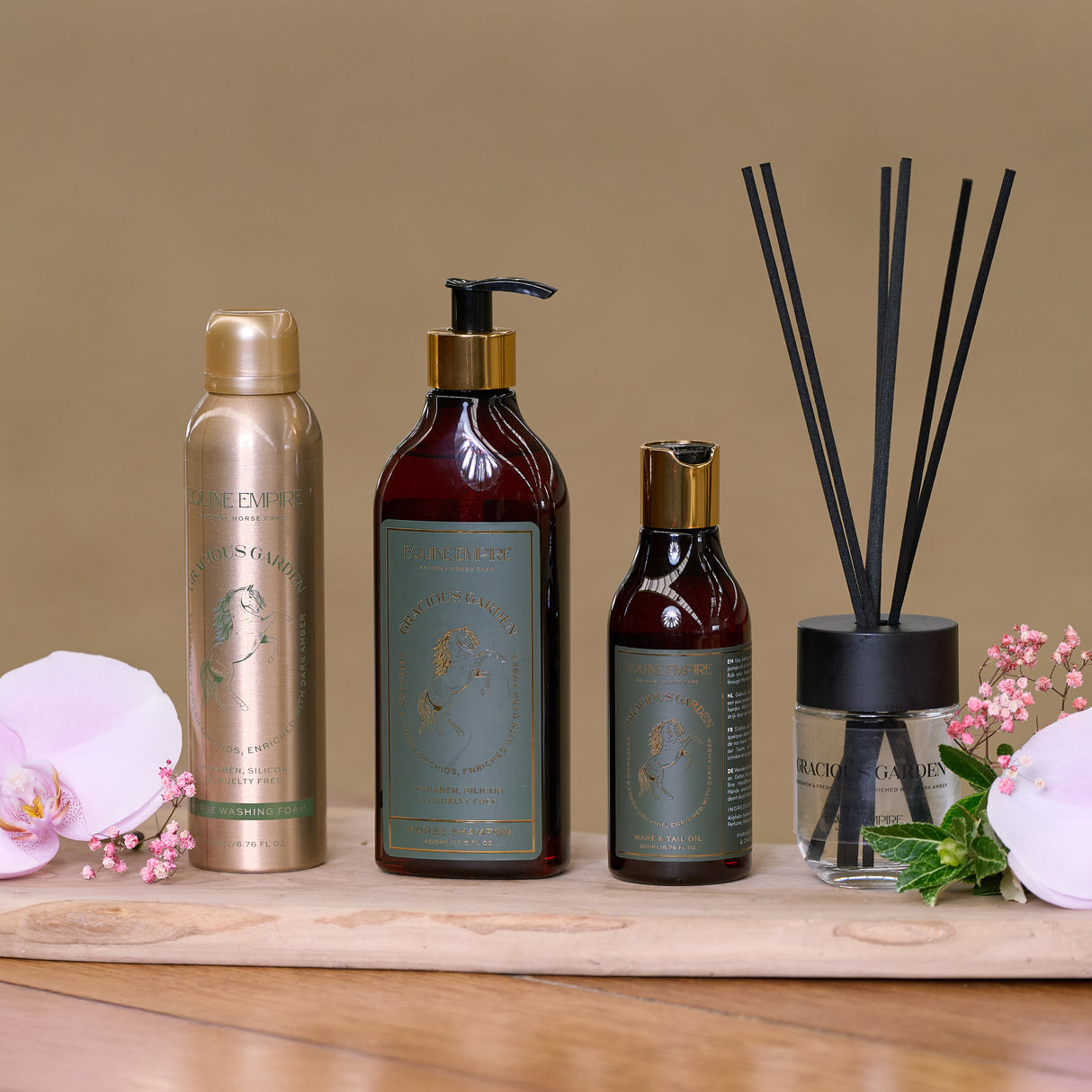 Use before brushing. Put some pumps of oil in the palm of your hands. Rub your hands together & stroke through the manes and tail. The Mane & tail oil smooths your horses hair and is excellent for a shiny finish.