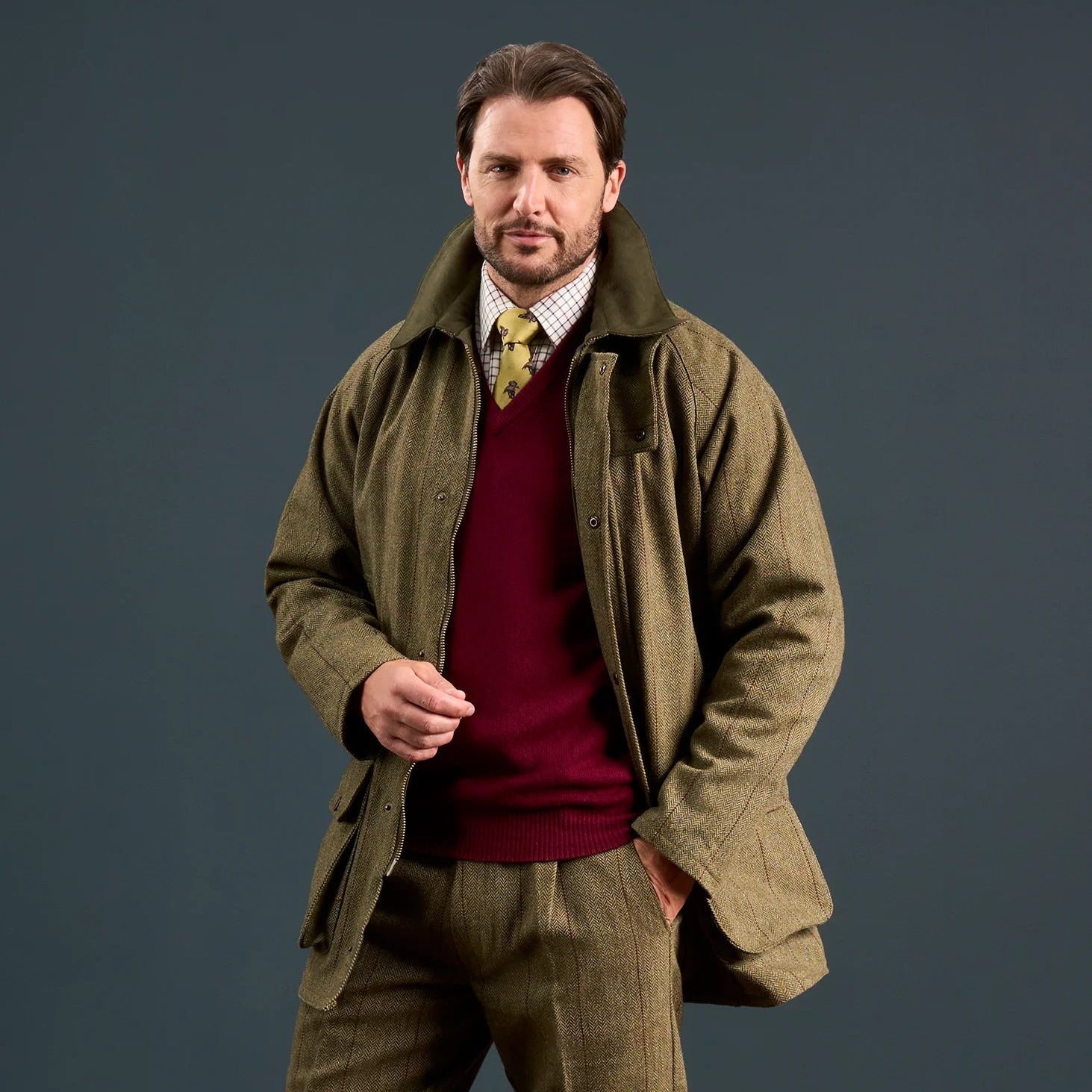 A firm favourite with gamekeepers and beaters, and part of Alan Paine's product offering since the inception of their country wear collection, the durable wool blend Rutland tweed shooting coat is designed to withstand the elements.