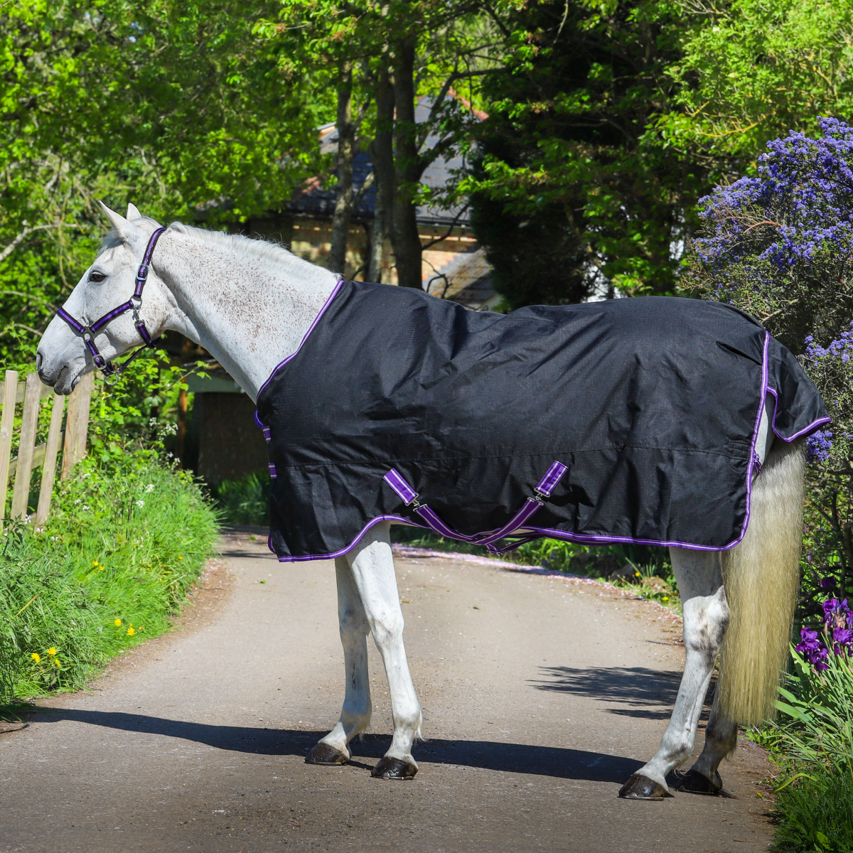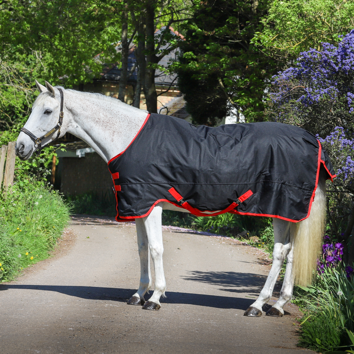 Cette couverture 100 % imperméable avec un rembourrage de 0 g est idéale pour garder votre cheval au frais et au sec.