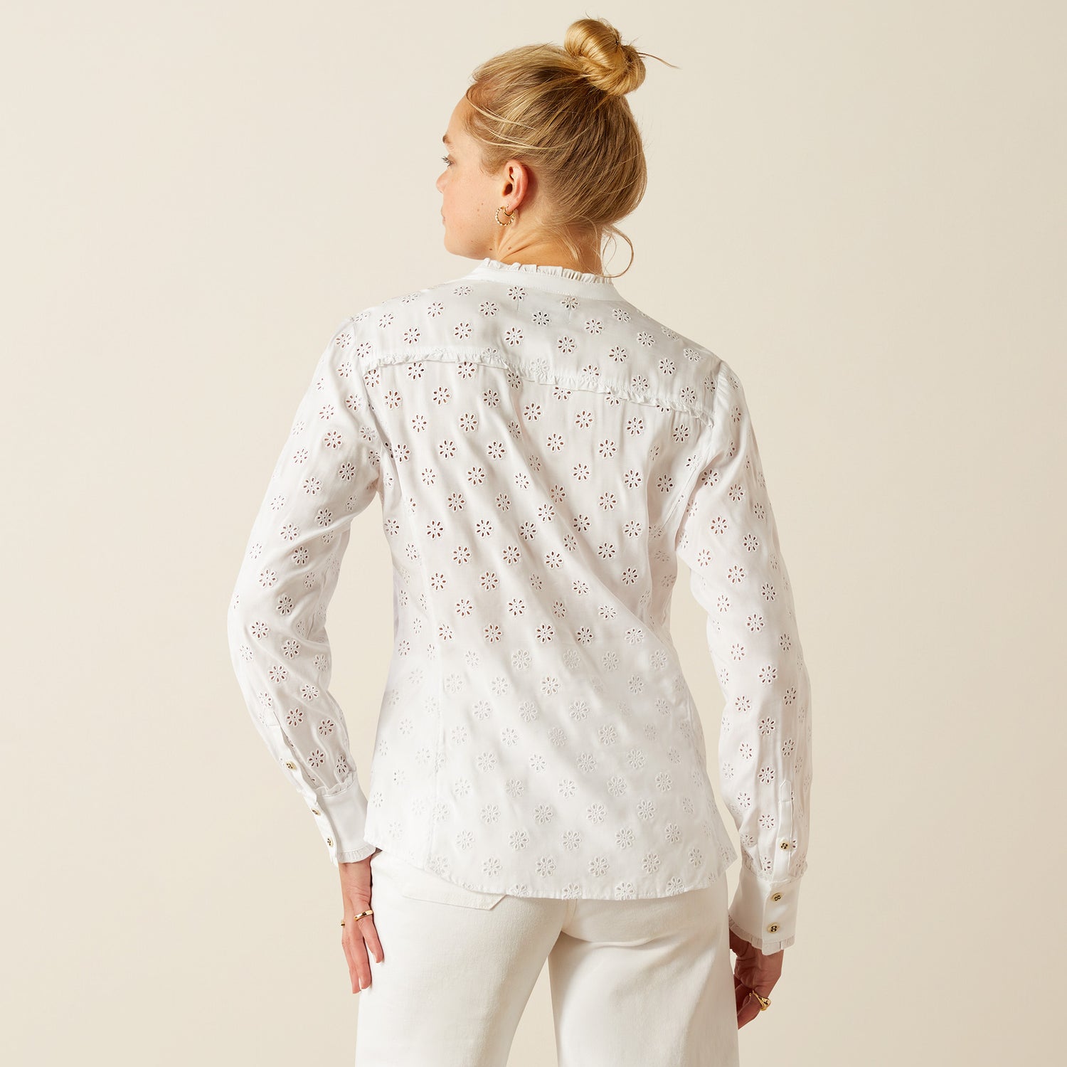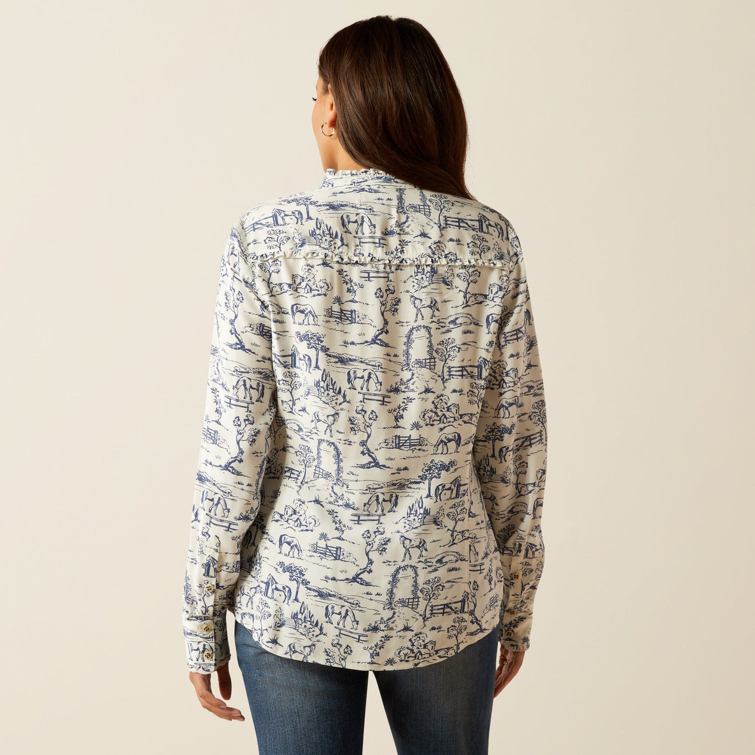 Constructed of a light, silky twill with a feminine mock neckline, the Clarion is the epitome of countryside elegance. Equally fitting when worn for coffee with friends or a festive dinner, there is no wrong place to wear it.