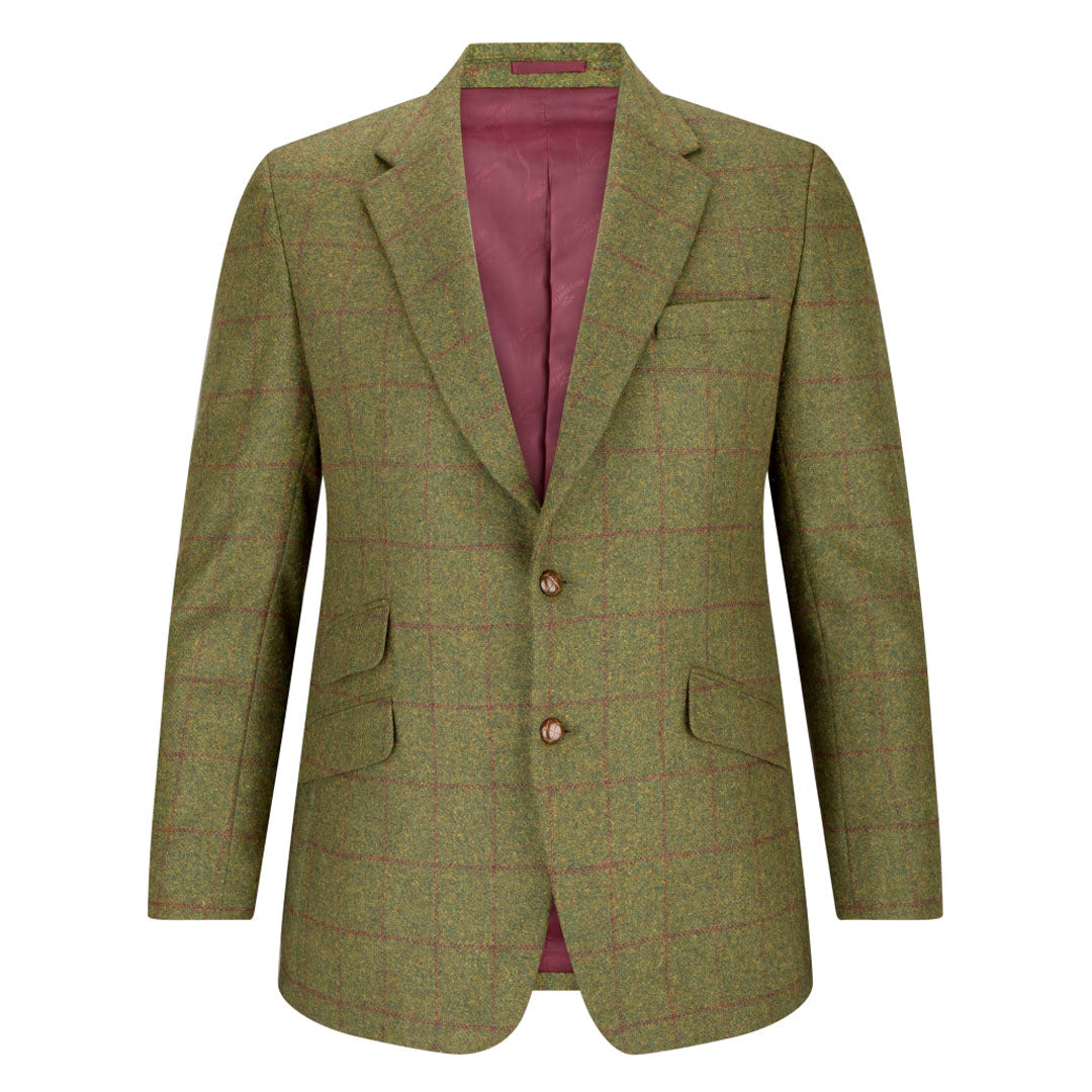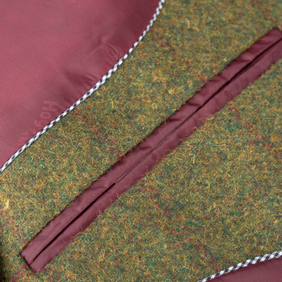 Superbement conçu avec une fermeture classique à deux boutons sur le devant, ainsi qu'une élégante poche ticket. L'étonnante doublure en statine de vin a été conçue pour compléter le motif à carreaux subtil, qui a été tissé dans la couche extérieure en tweed olive chiné, pour un look campagnard incroyable, qui vous gardera élégant toute la journée !