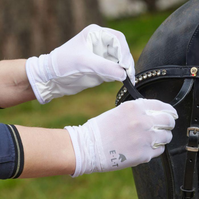 Enhance your riding experience with the E.L.T Sunny Riding Glove. Its sporty design and synthetic leather and power mesh material combination provide comfort and breathability. The touchscreen compatibility and elastic cuff add convenience, while the reinforced fingers offer durability. Ideal for warmer weather, this glove is the perfect accessory for any equestrian.