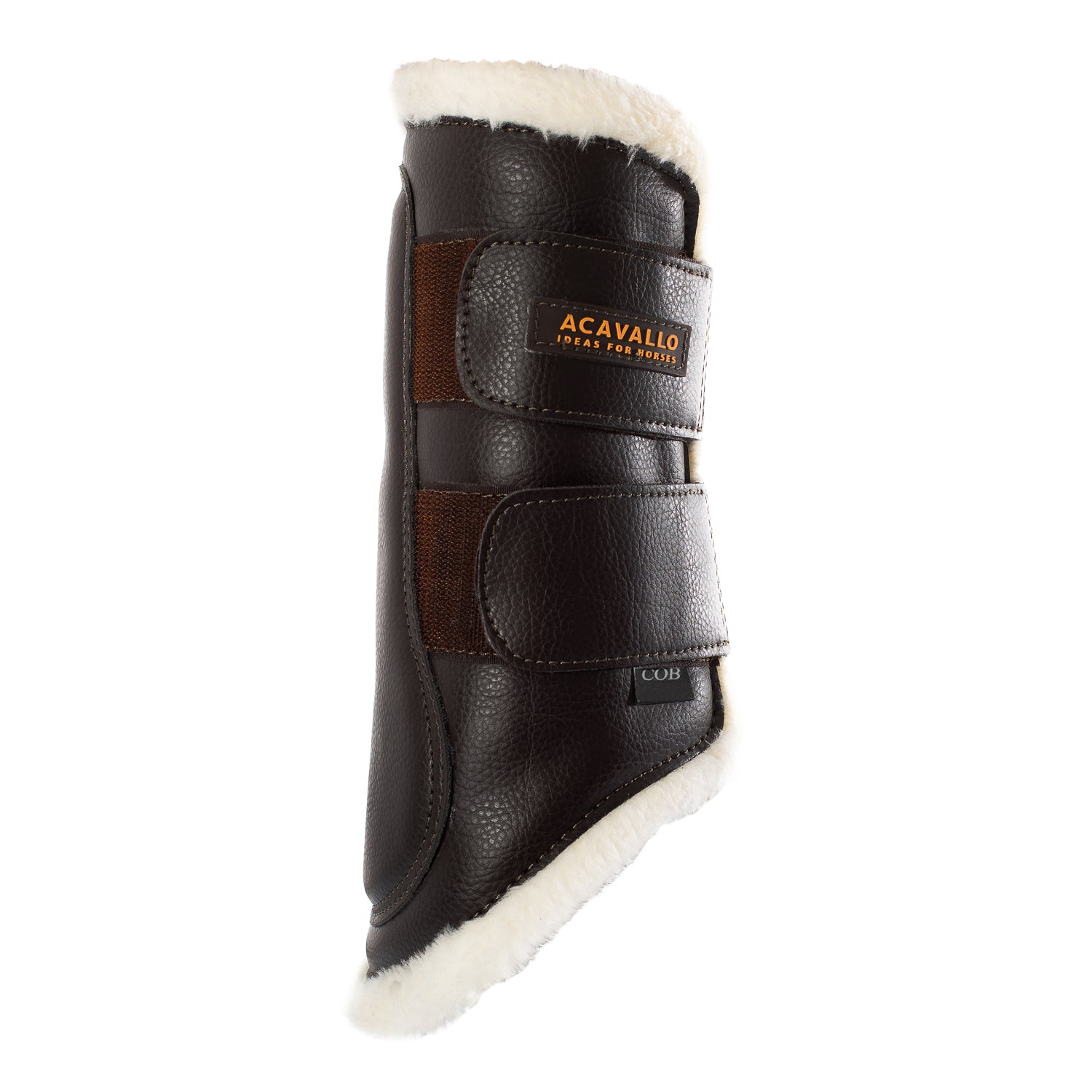 Acavallo® front brushing boots combine eco-leather durability with soft faux sheepskin padding for superior comfort and shock absorption. Featuring a double hook-and-loop closure, these boots stay securely in place while allowing your horse full freedom of movement. The synthetic sheepskin lining protects against rubbing and cushions impacts, making them an ideal choice for dressage riders seeking both protection and comfort. Elevate your horse’s performance with boots designed for care and reliability.