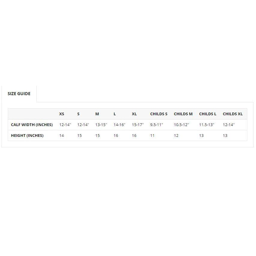 | Taille | Largeur du mollet (pouces) | Hauteur du mollet (pouces) |