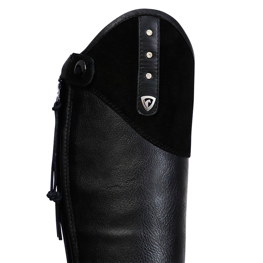 Magnifiquement confectionnées en utilisant une combinaison de cuir véritable et synthétique, les bottes Soriso sont à la fois souples et confortables, car le cuir synthétique extensible épouse étroitement les contours du mollet sans aucune restriction permettant à votre jeune jockey de conserver une flexibilité totale en selle, pour des performances optimales. .
