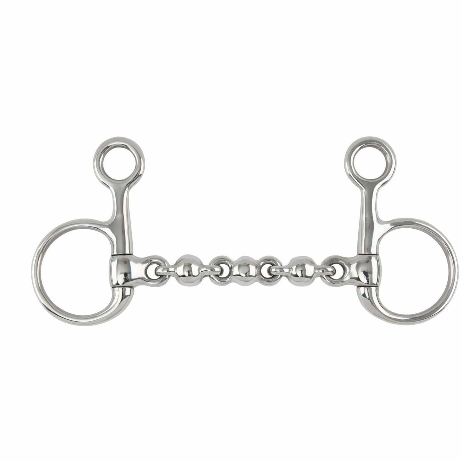 La bouche de Waterford est constituée de nombreux maillons rendant difficile pour le cheval de se pencher ou de saisir le mors. Les joues pendantes permettent une petite pression pour encourager la flexion.