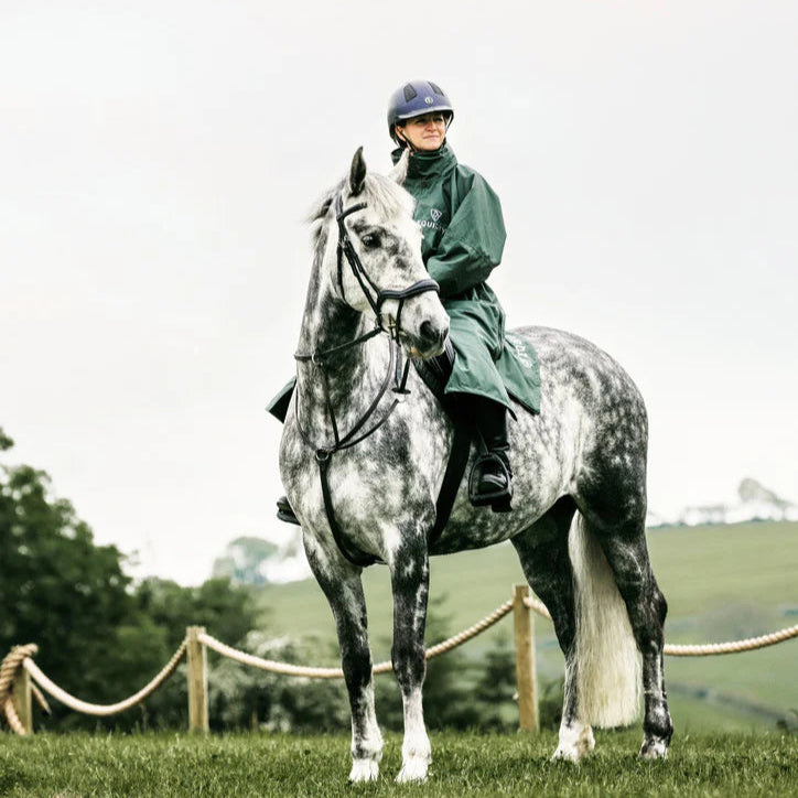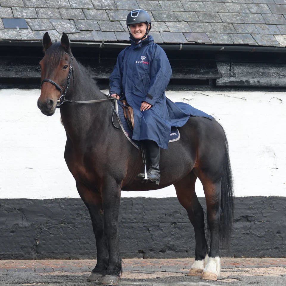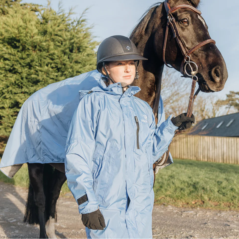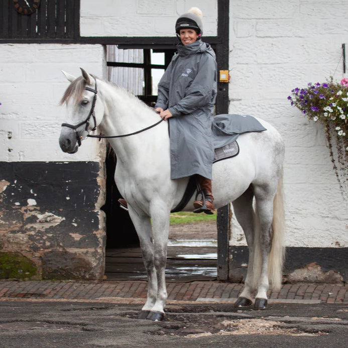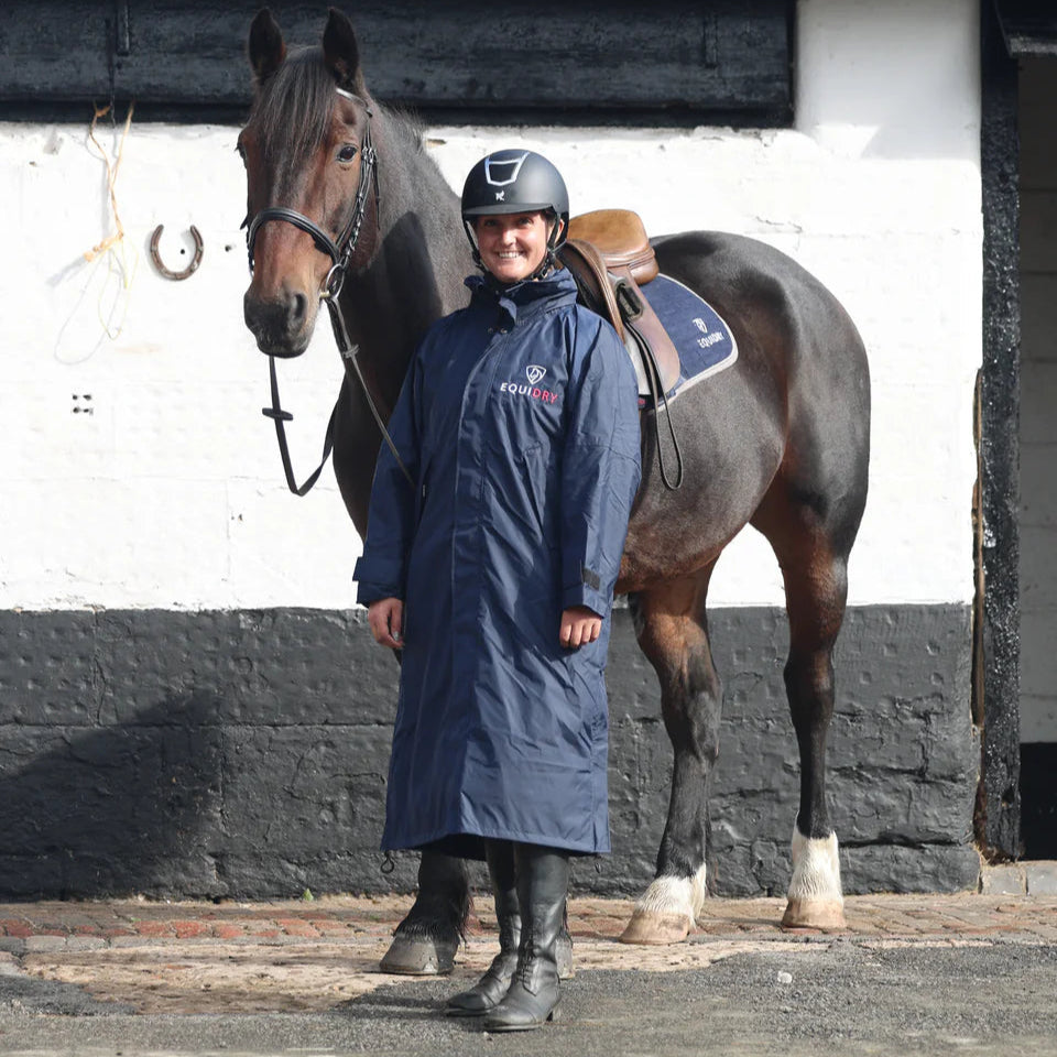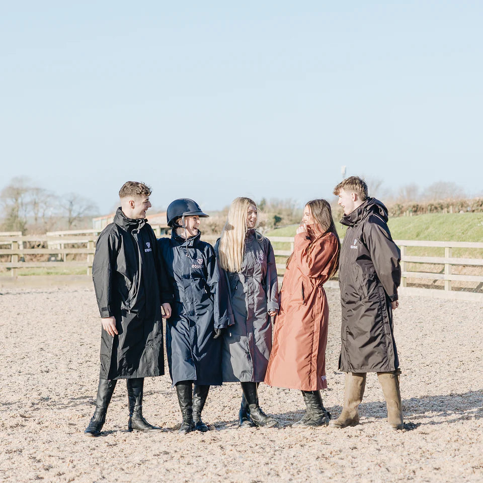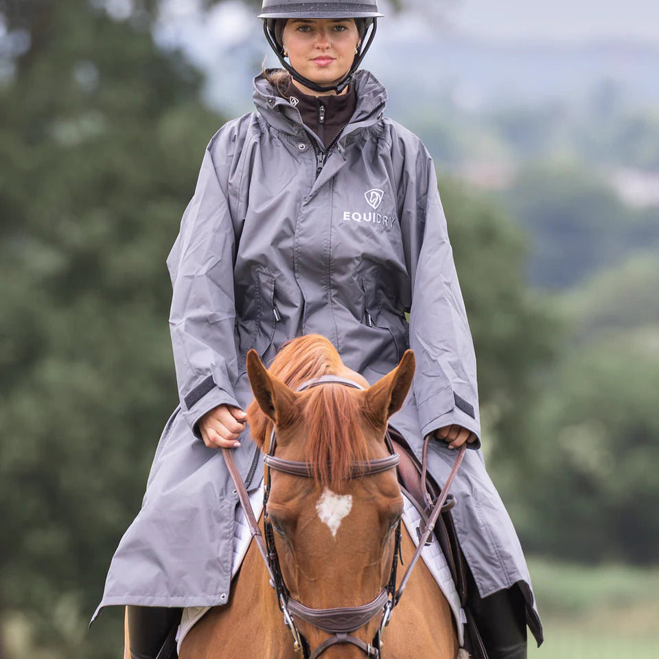 Stay dry, warm, and ready for anything in the EQUIDRY Evolution. Designed to be oversized and worn full length, this performance coat boasts a remarkable 20,000mm waterproof rating, is fully breathable, mesh-lined, and layer-friendly — even fitting over a body protector. Features include riding side zips that hold the coat securely in place and reveal hidden storm skirts that flare out in the saddle for enhanced leg coverage, along with adjustable cuffs, multiple pockets, and internal embroidery access.