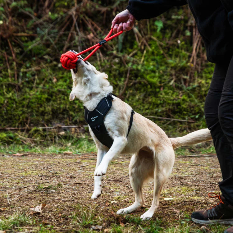 The Ball Rope Dog Toy is designed for hours of fun. Featuring a tight ball knot made from durable 11mm climbing-style rope, this toy is built to endure even the most energetic of pups. The long handle provides an easy grip for interactive play, perfect for tug-of-war or fetch. The reflective thread woven into the rope enhances visibility during low-light conditions and the bright orange colour ensures the toy is easily spotted.