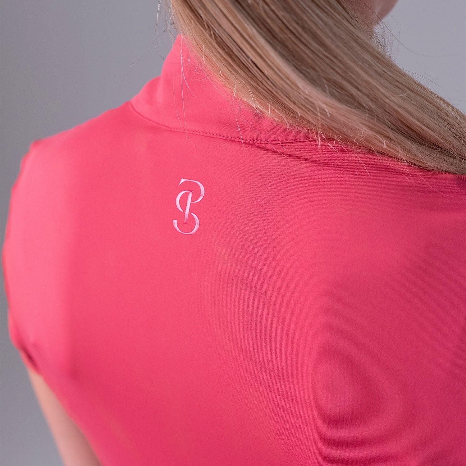 Short sleeved elastic top with in a double layer stand up collar crafted in functional polyamide and elastane blend for superior performance and perfect fit.