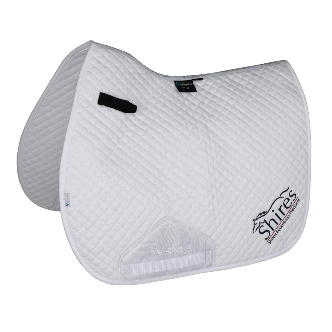 Le tapis de selle Shires Branded GP est intelligemment marqué et utilisé par l'équipe #shiresprorider. Extérieur respirant et anti-boulochage 100 % coton. La doublure ULTRA DRI ZONE évacue instantanément la transpiration du cheval pour réduire les risques de frottements et augmenter le confort. Guides de sangle et sangles élastiques avec anneau en D pour une sécurité pratique. Contre-sanglons résistants.