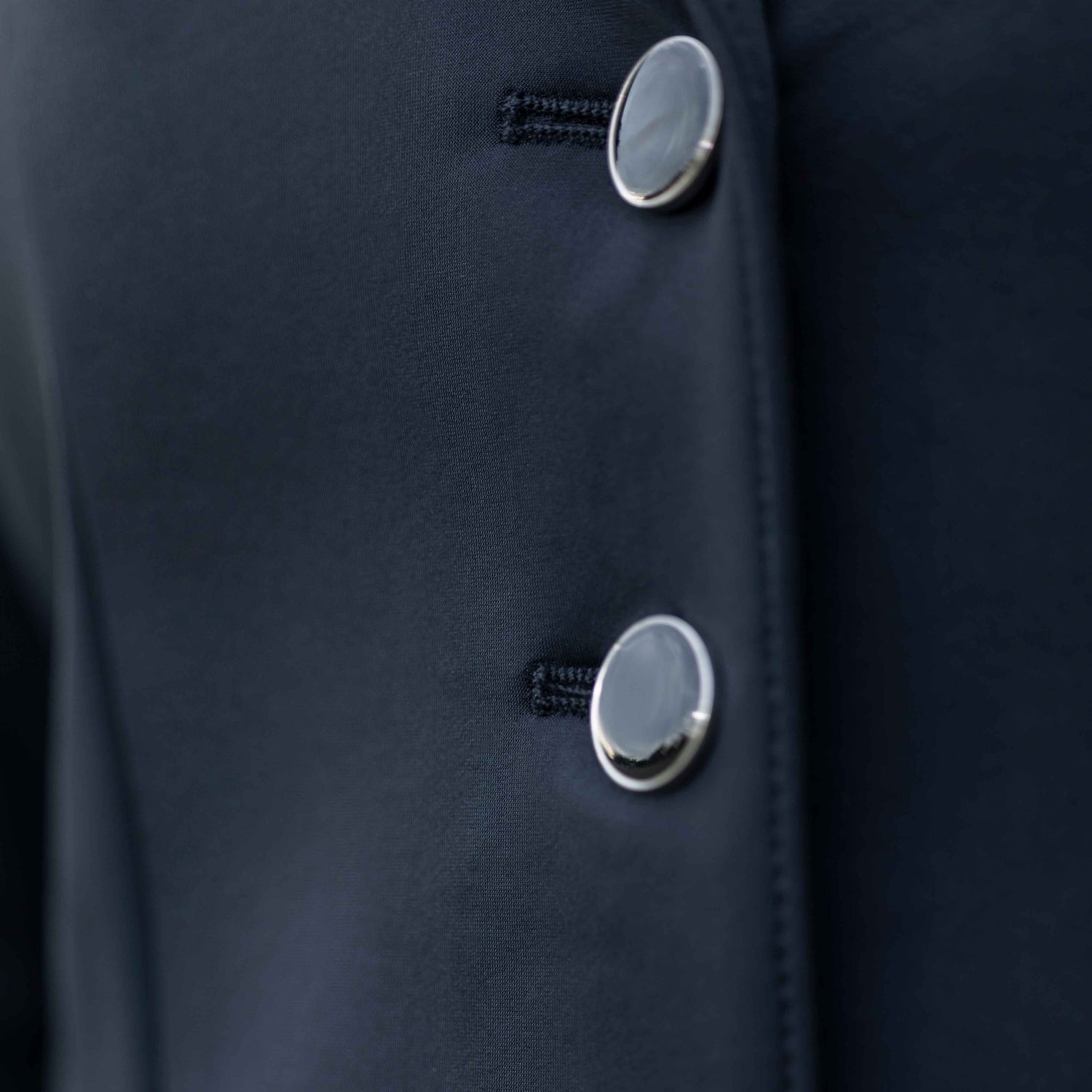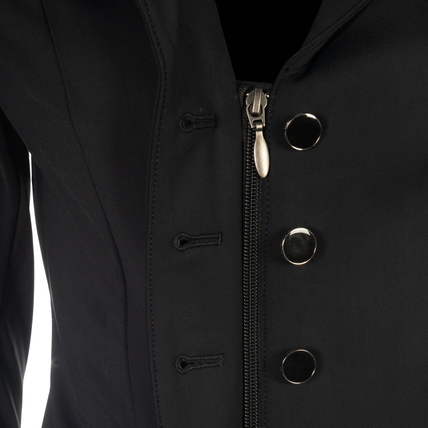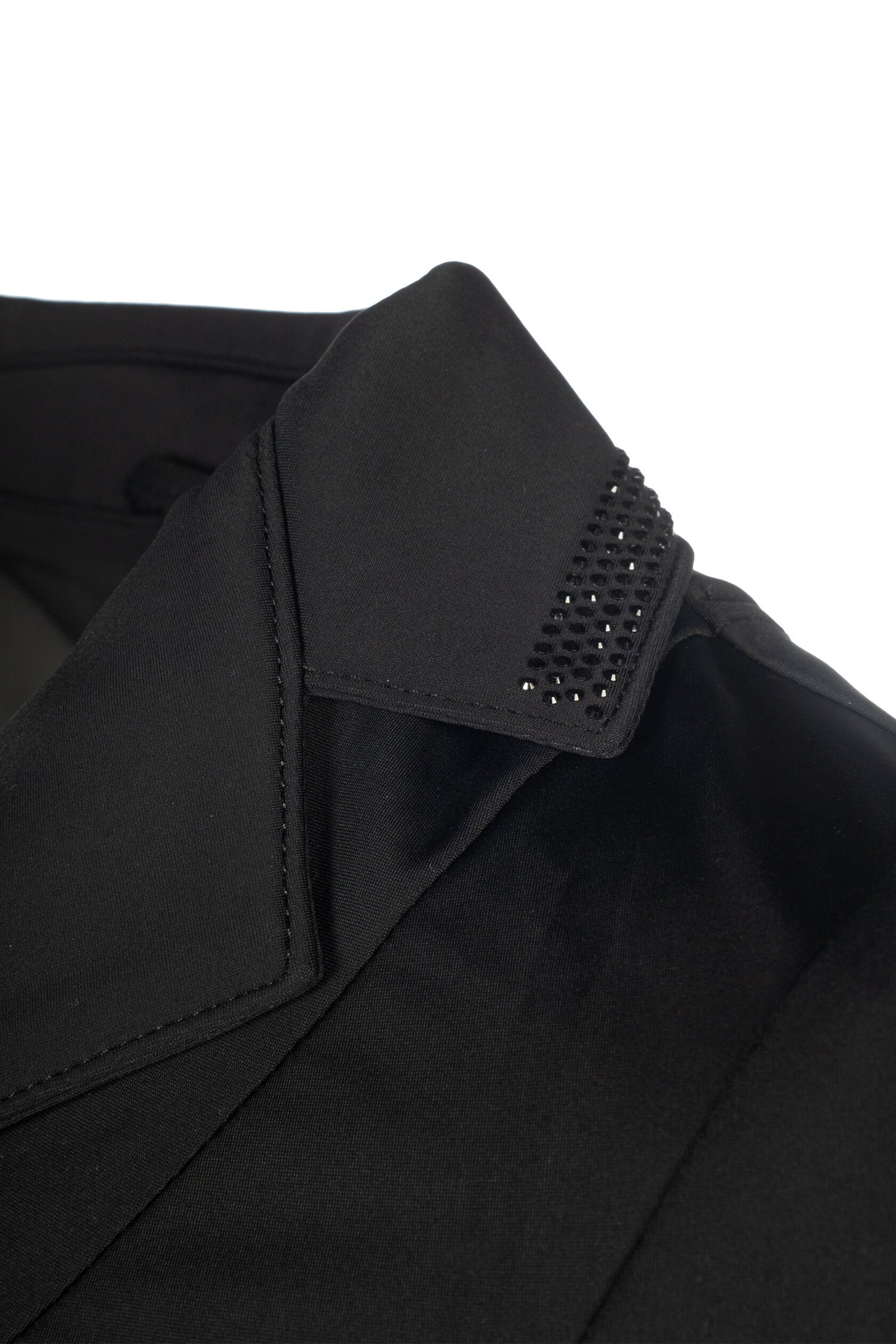 The HKM Ladies Competition Jacket -Amalfi- is the epitome of elegance and functionality. Made of crease-resistant material with a dirt-repellent surface, this jacket guarantees a flawless appearance. The concealed zip and rhinestone accents add a touch of sophistication, while riding slits and practical pockets provide maximum comfort.