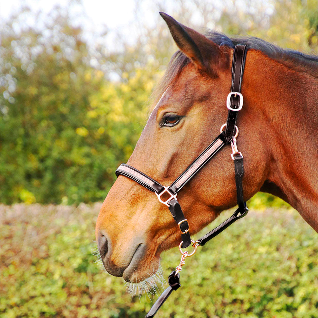 L'exquis licol en cuir Hy Equestrian Rosciano avec détails en or rose a été incrusté de délicats diamants en or rose et permettra à votre cheval de se démarquer de la foule, que vous l'utilisiez tous les jours dans la cour ou pour le meilleur lors des compétitions.