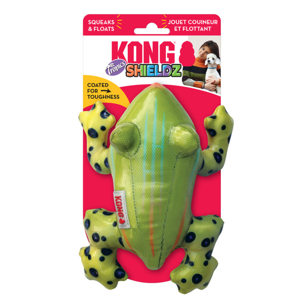 Les KONG Shieldz Tropics sont scellés avec un revêtement ultra-durable conçu pour durer. L'extérieur de cette grenouille amusante protège l'intérieur densément rembourré, garantissant aux chiens des couches d'engagement qui répondent à leur instinct naturel de mastication. Un couineur permet aux chiots de jouer pour un plaisir durable. Ces amis durables se nettoient facilement, ce qui les rend idéaux pour jouer en intérieur et en extérieur. De plus, ils flottent pour s'amuser en nageant.