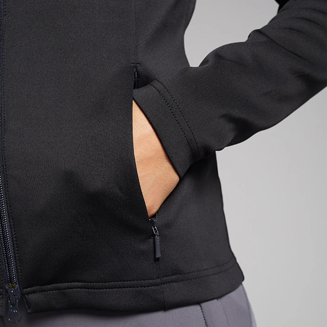 This breathable mid layer is a great layering piece and has a water repellent coating to help keep you dry. Discreet seamlines and super soft fabric give a flattering fit. Branding is kept clean and tonal.