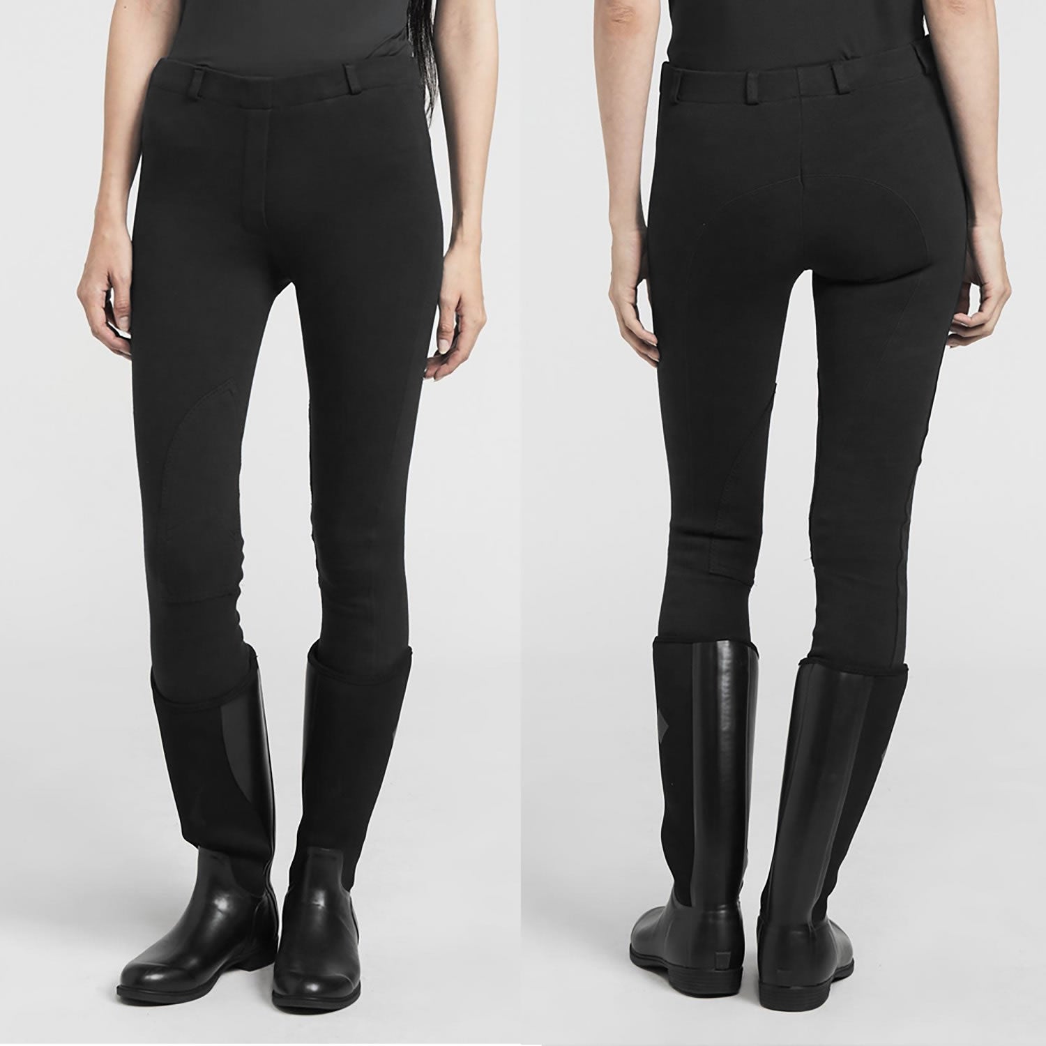 These jodhpurs provide the ultimate in comfort and freedom of movement, both in and out of the saddle. Crafted with a 95% cotton, 5% spandex fabric blend, boasting an elasticated waist and pull-on design. Featuring a branded waistband with belt loops, turn-up ankles and a faux zipper, the Brightside Jodhpurs ooze style, with no sacrifice on practicality. Additional features include an inner small pocket and reinforced knee patches, providing extra durability, making them the perfect addition to your little one's wardrobe.