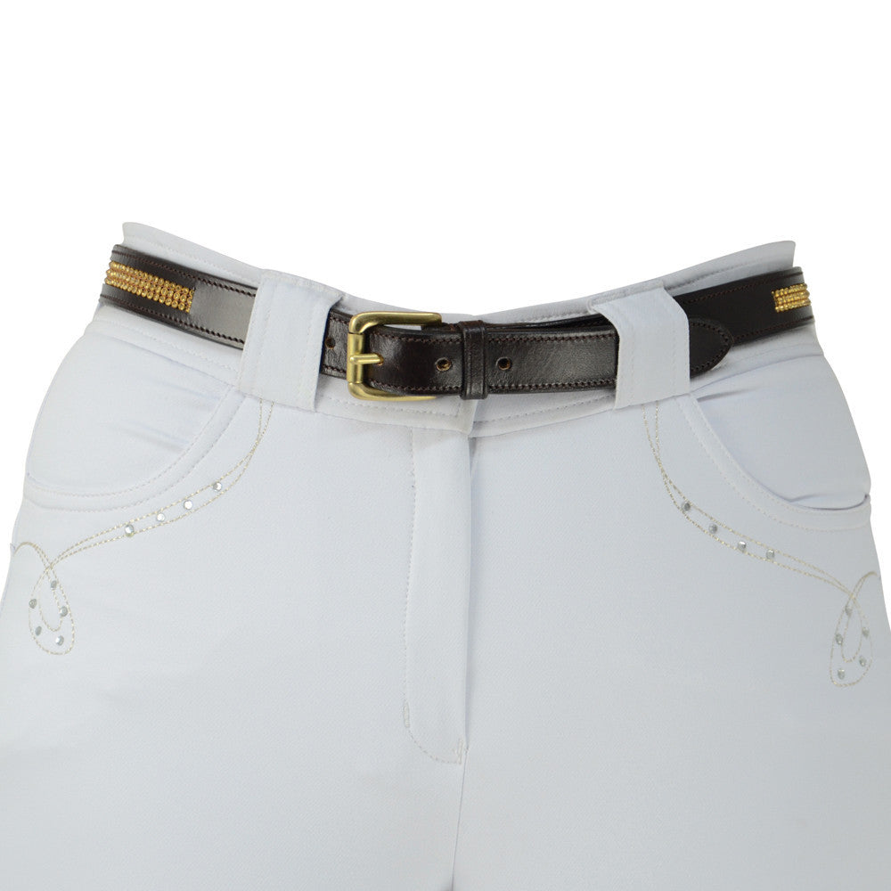 3列のクリスタルダイアマンテスの柔らかい革で作られた見事なベルト。競争のズボンで驚くほどに見えます。