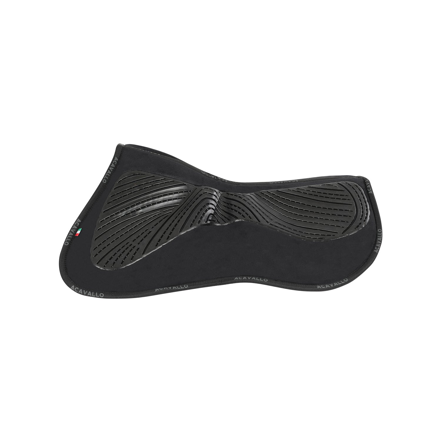 This Acavallo half pad combines memory foam and gel technology for superior shock absorption and stability. Featuring classic withers and spine design in suede with gel grip, it prevents saddle movement and compensates for minor back imperfections. Configurable pockets allow easy adjustment of thickness for a tailored fit. Its anatomical cut and memory foam ensure even pressure distribution and perfect adaptability to your horse’s silhouette. Made with hypoallergenic, non-toxic Acavallo® gel, this pad offers comfort and safety for direct contact with your horse.