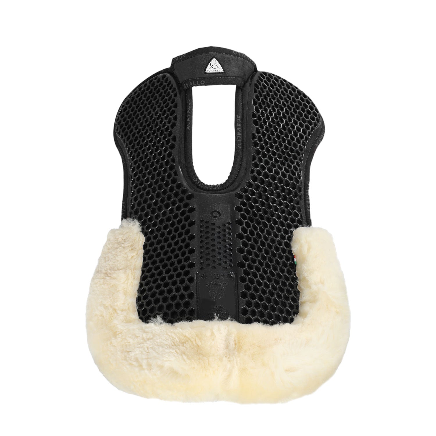 It combines the non-slip, shock-absorbing and breathable properties of the Acavallo® Hexagonal gel with a memory foam lining in the lower part and a sheepskin rear edge.