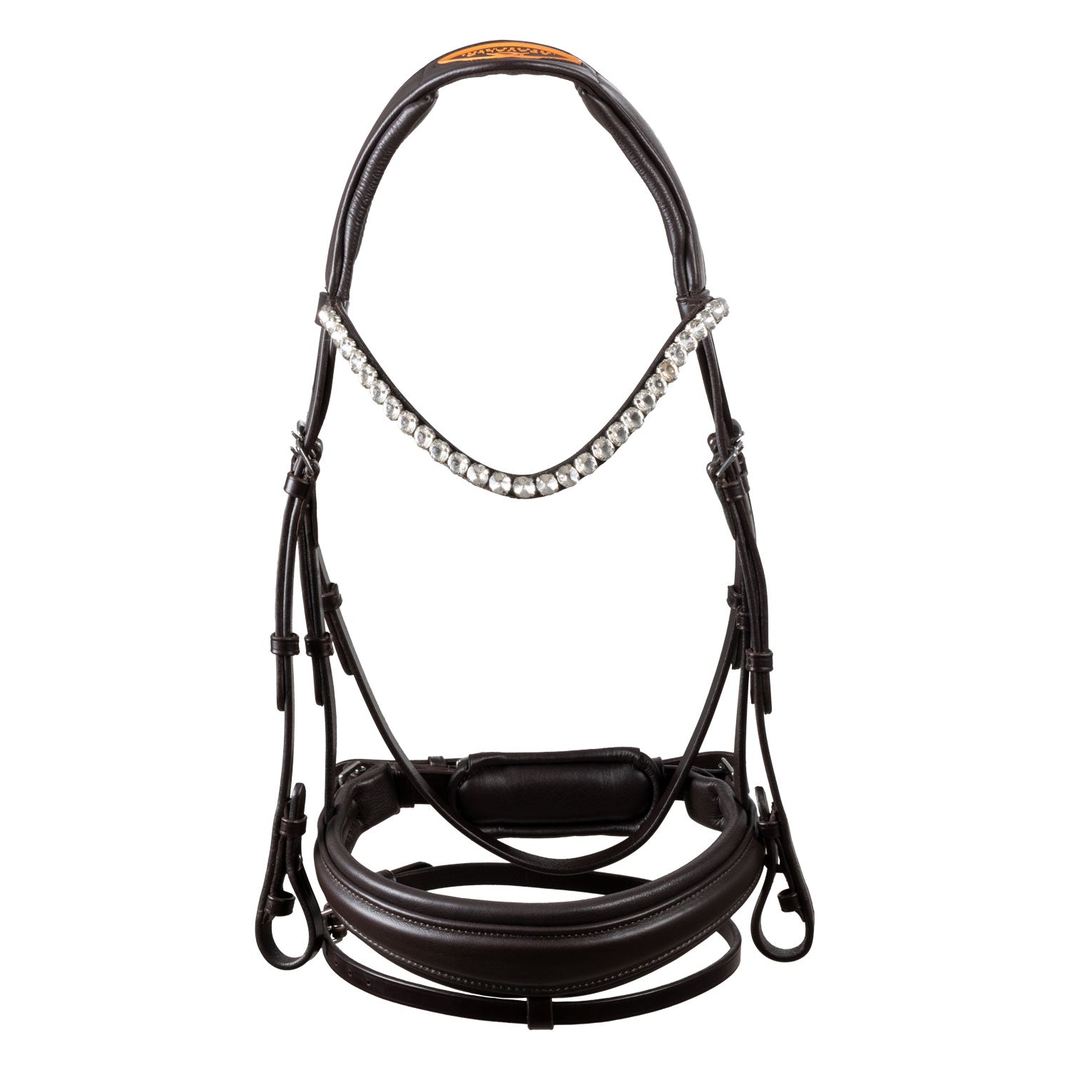 Crafted from premium Italian calfskin, the Acavallo Starry Night Bridle exemplifies expert artisan quality. Its anatomically shaped headpiece features dual lateral latex padding, relieving pressure on the horse’s skull for superior comfort. The diamond-covered browband adds a sophisticated sparkle, enhancing its elegant design. Equipped with durable stainless steel buckles, this bridle ensures secure fit and lasting performance. Combining refined style with thoughtful functionality, the Starry Night bridle prioritizes horse welfare without compromising on craftsmanship.