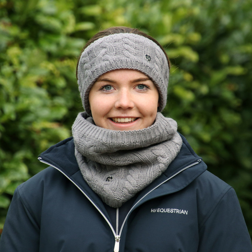 このゴージャスなケーブルニットスヌードで、この冬に居心地が良くぴったりとぴったりとぴったりです。内側は、ぴったりの雰囲気のために肌に暖かい空気を閉じ込めるように設計された柔らかいフリースの裏地を特徴としています。マッチングヘッドバンドと帽子が利用可能です。