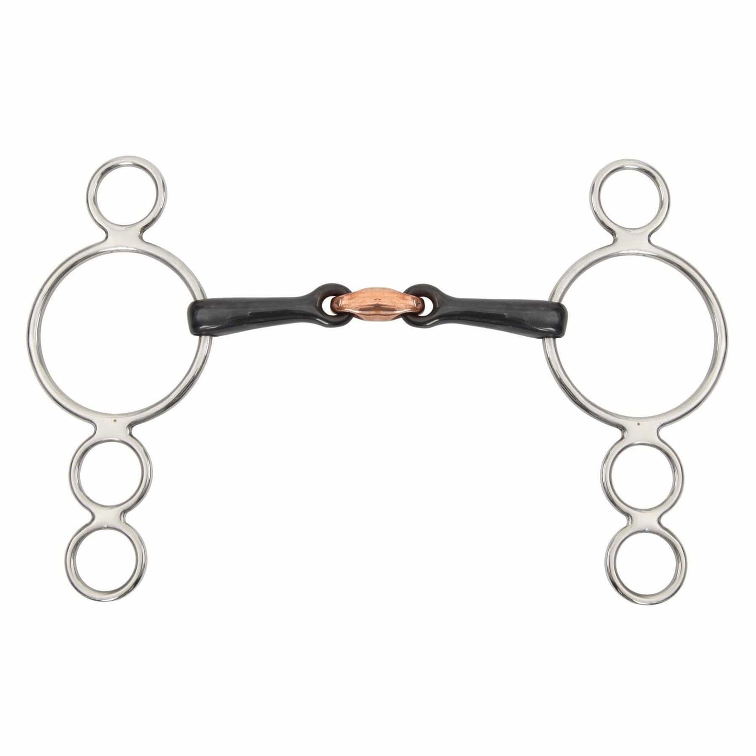甘い鉄は唾液分泌を促し、馬の口に心地よい味を生み出します。銅のロゼンジは暖かさを追加します。隆起した銅のrib骨は、馬があまりにも多くのホールドを摂取するのを防ぐのに役立ちます。 5インチ以下のサイズには、より短い頬が付いており、ビットが小さい頭に比例していることを確認します。