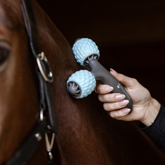 The Waldhausen Health + Care massage rollers offer a simple and effective way to give your horse a relaxing massage - without any electronics. Thanks to the special structure of the rollers, specific muscle areas can be loosened and tension relieved. The user-friendly handle ensures comfortable and safe use, while the massage rollers are ideal for the soft, large areas of the horses body. Use of Waldhausen Health + Care massage rollers is particularly effective as a warm-up before or for regeneration after intensive training sessions to keep the horse healthy. This tool is simple and flexible to use, and ideal for strengthening the relationship between horse and human.